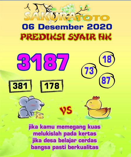 Permainan togel online ini sangatlah membutuhkan kesadaran diri di dalam membaca dan memprediksi suatu angka. Maka dari itu kunjungi selalu kode syair hk hari ini dimana dalam forum syairhk hari ini yang kami terbitkan ini akan jauh lebih memudahkan anda dalam menebak angka keluaran di periode selanjutnya. Kami juga sudah mempersiapkan Prediksi HK Akurat 6 Desember 2020 untuk anda member tercinta kami.