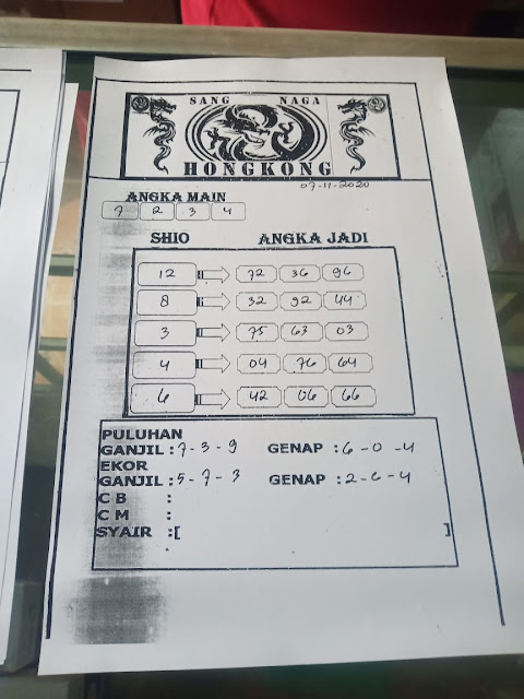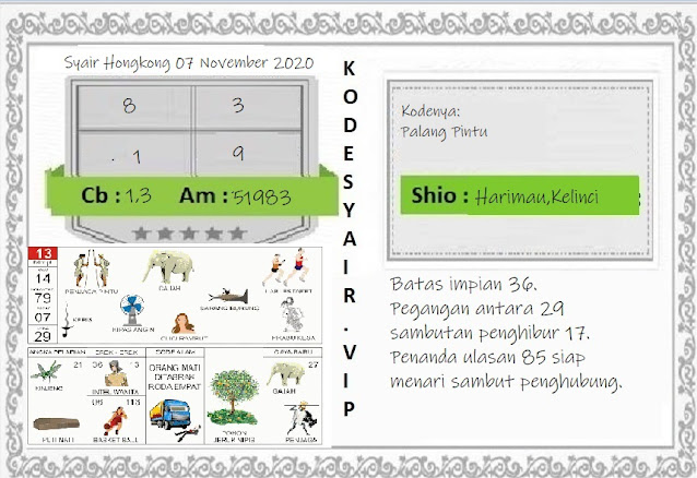 Syair Hongkong 7 November 2020