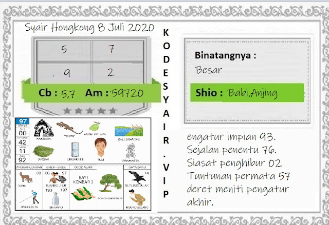 Tetaplah pergunakan perasaan anda sendiri untuk memahami semua makna dari Syair HK 8 juli 2020. Jangan terlalu terburu – buru ya saat membaca semua makna dari syair hk kami ini. Pahami dan cerna secara pelan dan pilih lah salah satu syair yang paling terfavorit oleh para penikmat pecinta judi togel online. Oh ya tahukan kalian pada dasarnya ada beberapa syair yang paling banyak dicari oleh jutaan para pemain judi togel online seperti syair kampleng, syair pandawa hk, syair mbah semar, syair hk naga mas.