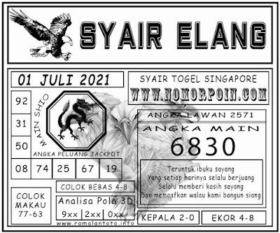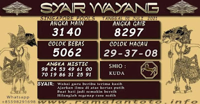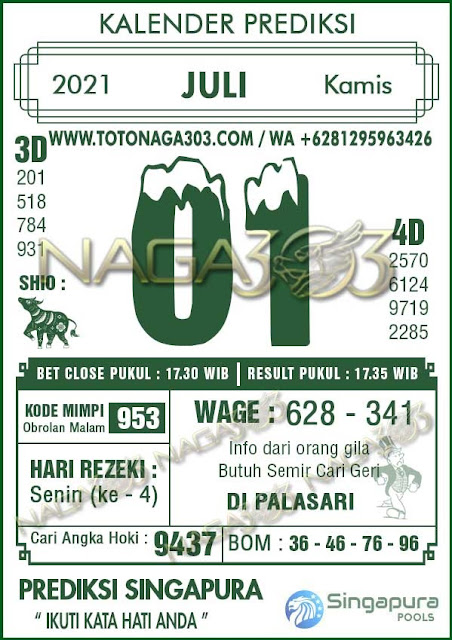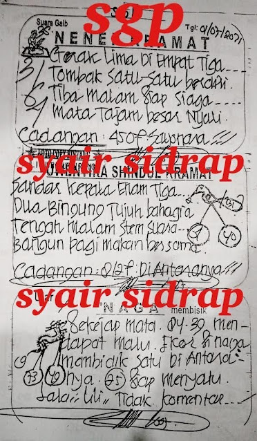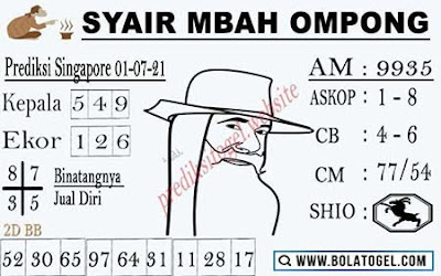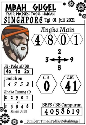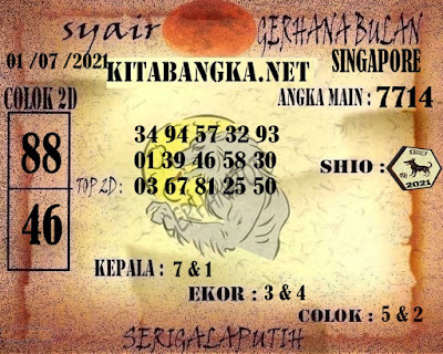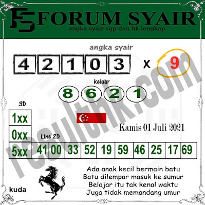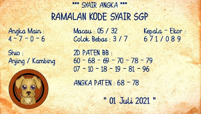 Pada dasarnya dalam semua permainan togel online ini sangatlah membutuhkan kepekaan atau kesadaran anda dalam membaca serta memprediksi nomor togel singapore. Oleh karena itu syair Togel Singapore yang kami terbitkan ini akan sangat memudahkan para pejudi online saat memprediksi angka keluaran di periode selanjutnya. kami sudah mempersiapkan dengan jelas tentang Prediksi togel Sgp 01 Juli 2021 untuk anda para pencinta judi online.