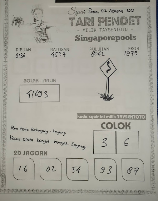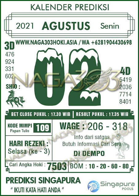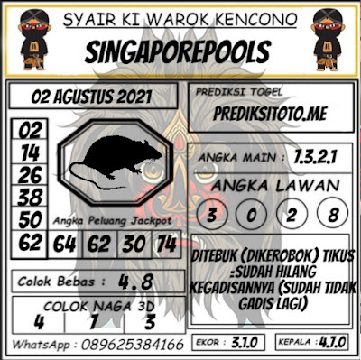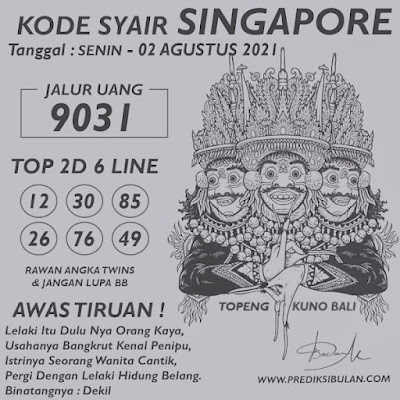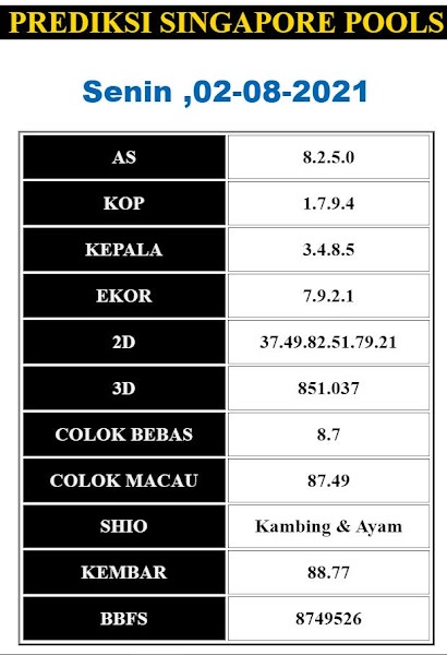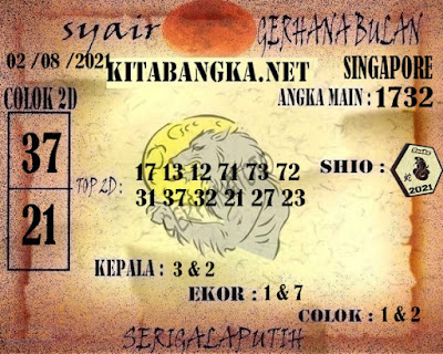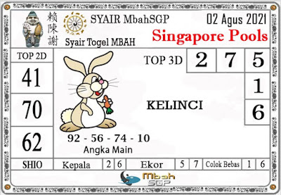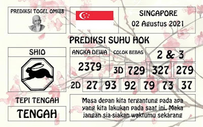 Pada dasarnya dalam semua permainan togel online ini sangatlah membutuhkan kepekaan atau kesadaran anda dalam membaca serta memprediksi nomor togel singapore. Oleh karena itu syair Togel Singapore yang kami terbitkan ini akan sangat memudahkan para pejudi online saat memprediksi angka keluaran di periode selanjutnya. kami sudah mempersiapkan dengan jelas tentang Prediksi togel Sgp 02 Agustus 2021 untuk anda para pencinta judi online.