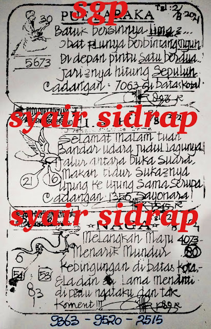 Tetap pergunakan naluri diri sendiri untuk membaca serta mengerti makna asal Syair Sgp 02 Agustus 2021. Para Pemain Judi Online sebaiknya jangan terlalu terburu – buru dalam membaca makna yang berasal dari prediksi syair singapore kami. Pahamilah secara pelan serta pilih salah satu diantara syair yang paling banyak dicari oleh para pecinta togel online. Meskipun syair togel yang kami berikan ini sangat banyak serta beraneka ragam, tetapi pada dasarnya ada beberapa syair yang sangat banyak dicari seperti syair kampleng, syair pandawa, syair mbah semar, serta syair naga mas.