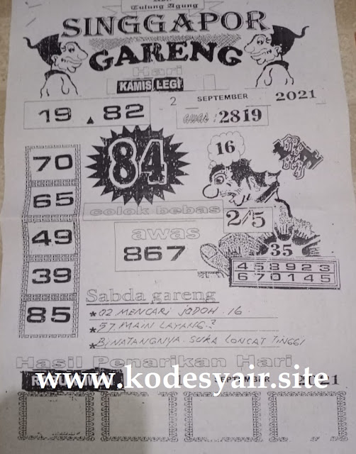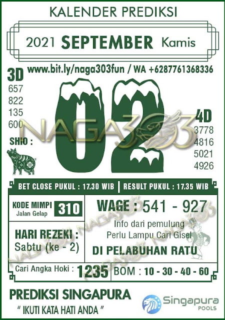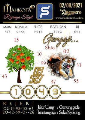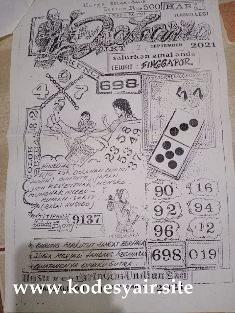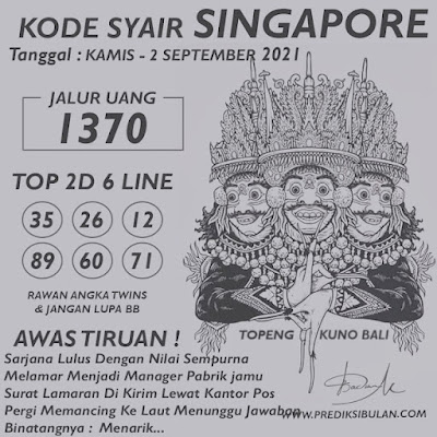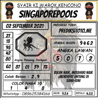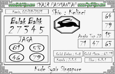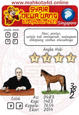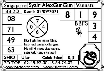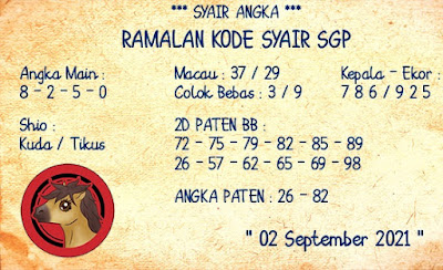 Pada dasarnya dalam semua permainan togel online ini sangatlah membutuhkan kepekaan atau kesadaran anda dalam membaca serta memprediksi nomor togel singapore. Oleh karena itu syair Togel Singapore yang kami terbitkan ini akan sangat memudahkan para pejudi online saat memprediksi angka keluaran di periode selanjutnya. kami sudah mempersiapkan dengan jelas tentang Prediksi togel Sgp 02 September 2021 untuk anda para pencinta judi online.