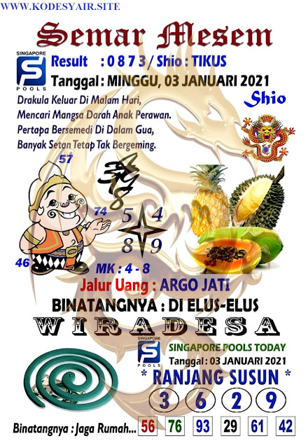 Pada dasarnya dalam semua permainan togel online ini sangatlah membutuhkan kepekaan atau kesadaran anda dalam membaca serta memprediksi nomor togel singapore. Oleh karena itu syair Togel Singapore yang kami terbitkan ini akan sangat memudahkan para pejudi online saat memprediksi angka keluaran di periode selanjutnya. kami sudah mempersiapkan dengan jelas tentang Prediksi Togel Sgp 03 Januari 2021 untuk anda para pencinta judi online.