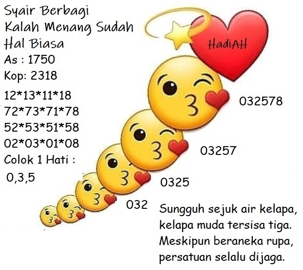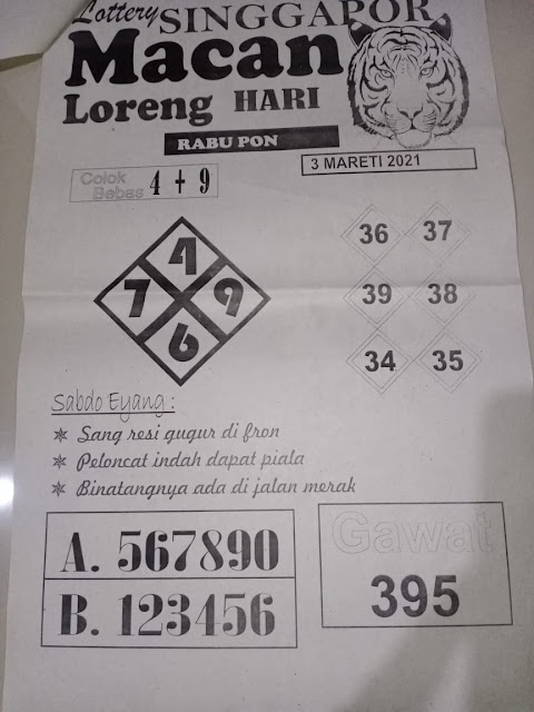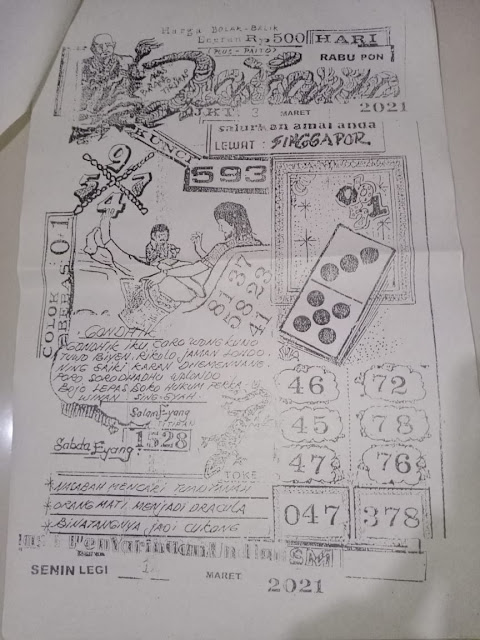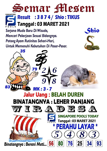 Tetap pergunakan naluri diri sendiri untuk membaca serta mengerti makna asal Syair Sgp 03 Maret 2021. Para Pemain Judi Online sebaiknya jangan terlalu terburu – buru dalam membaca makna yang berasal dari prediksi syair singapore kami. Pahamilah secara pelan serta pilih salah satu diantara syair yang paling banyak dicari oleh para pecinta togel online. Meskipun syair togel yang kami berikan ini sangat banyak serta beraneka ragam, tetapi pada dasarnya ada beberapa syair yang sangat banyak dicari seperti syair kampleng, syair pandawa, syair mbah semar, serta syair naga mas.