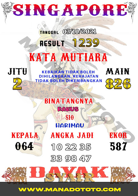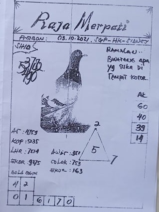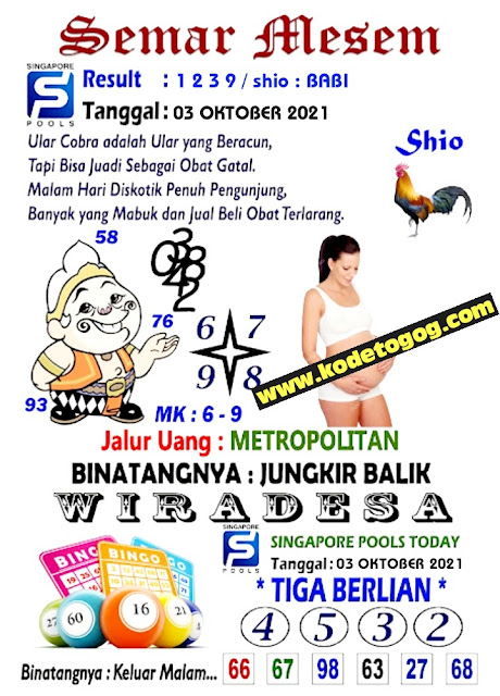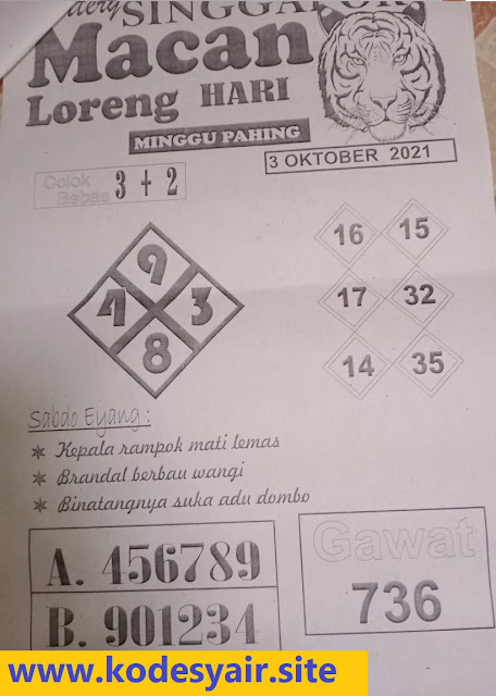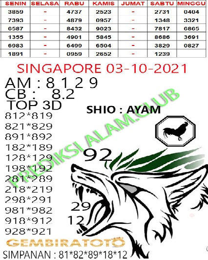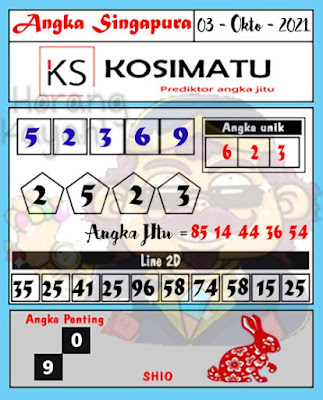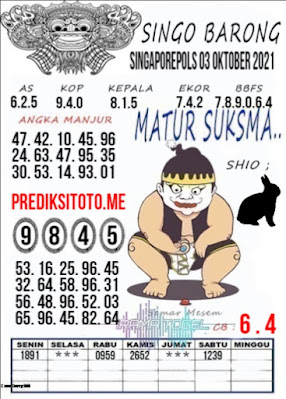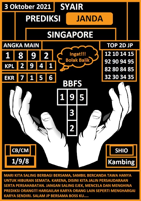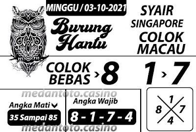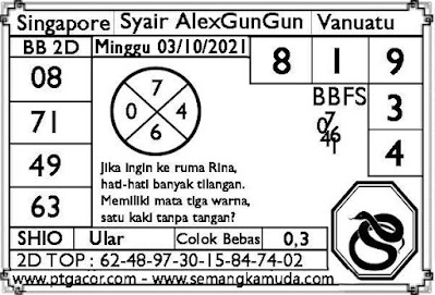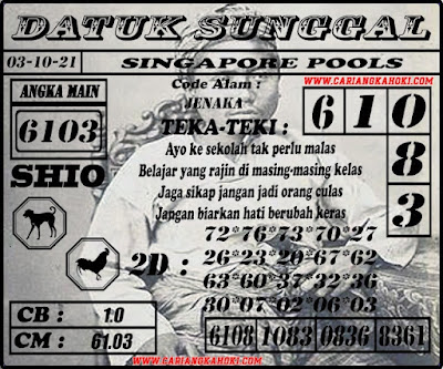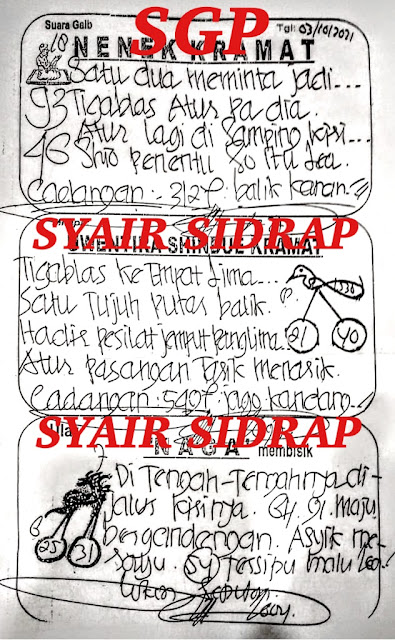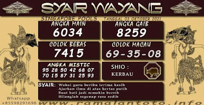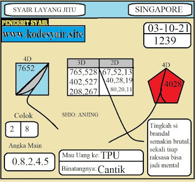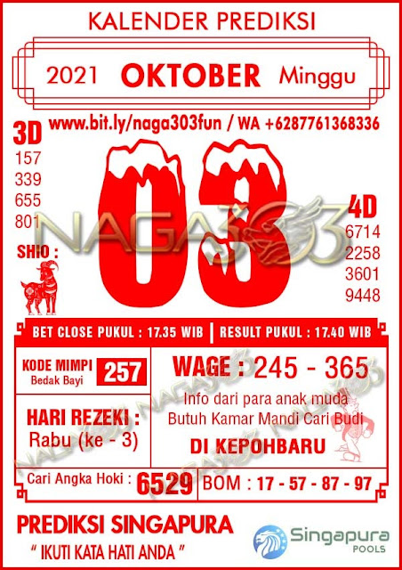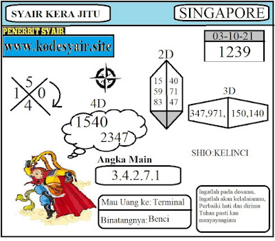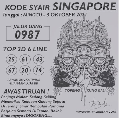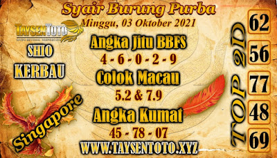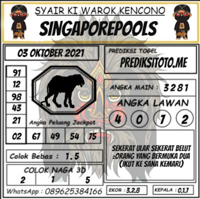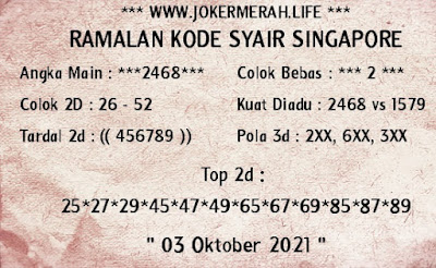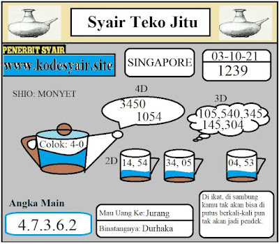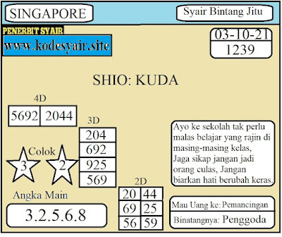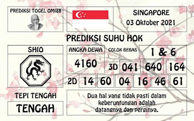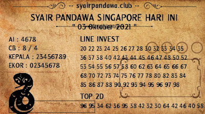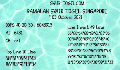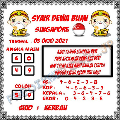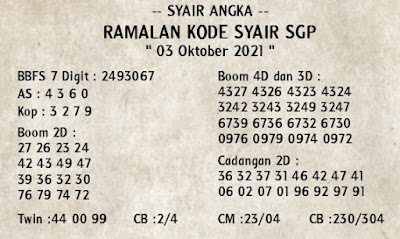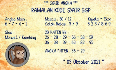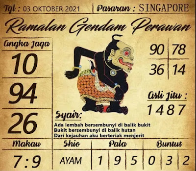 Pada dasarnya dalam semua permainan togel online ini sangatlah membutuhkan kepekaan atau kesadaran anda dalam membaca serta memprediksi nomor togel singapore. Oleh karena itu syair Togel Singapore yang kami terbitkan ini akan sangat memudahkan para pejudi online saat memprediksi angka keluaran di periode selanjutnya. kami sudah mempersiapkan dengan jelas tentang Prediksi togel Sgp 03 Oktober 2021 untuk anda para pencinta judi online.