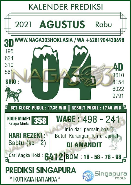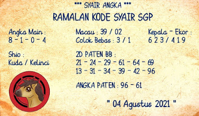 Prediksi SGP 04 Agustus 2021