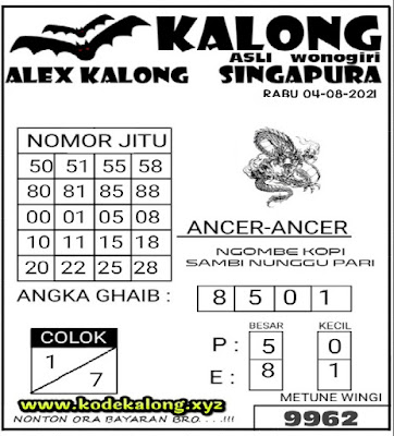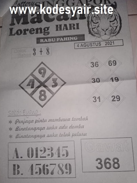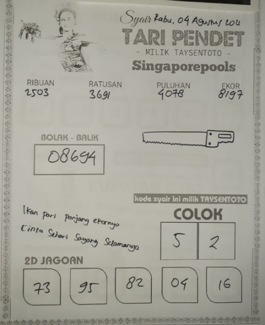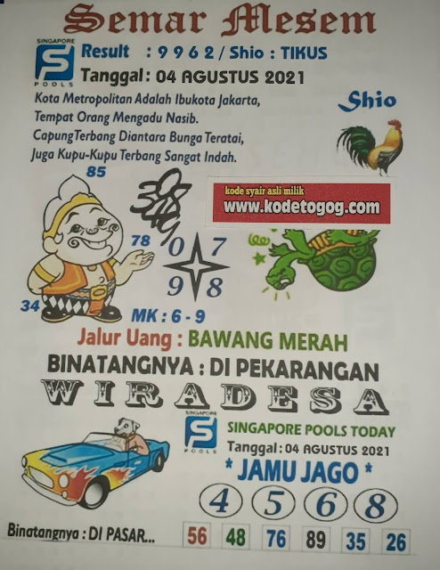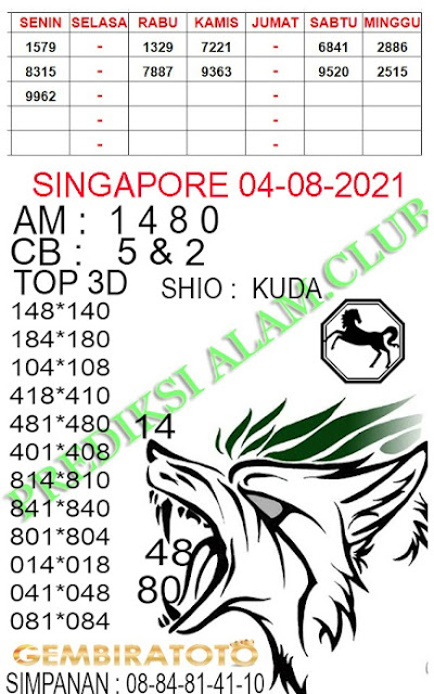 Syair Singapore 04 Agustus 2021