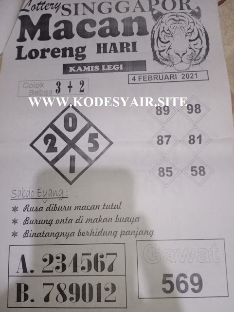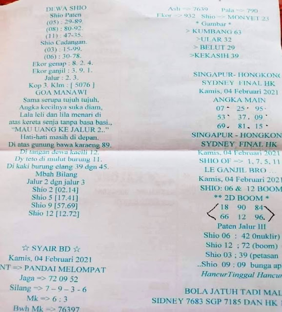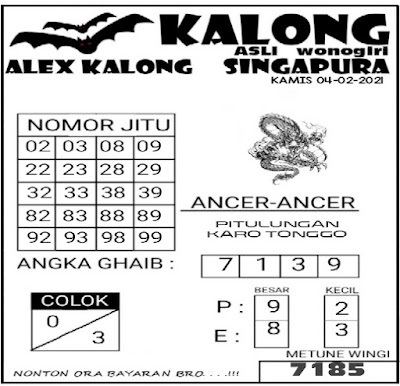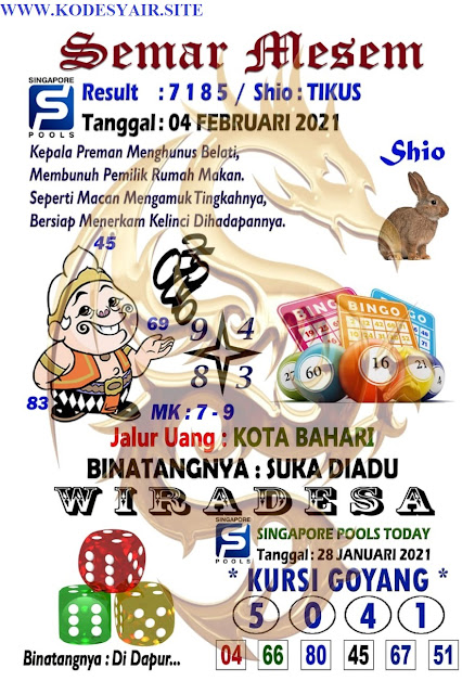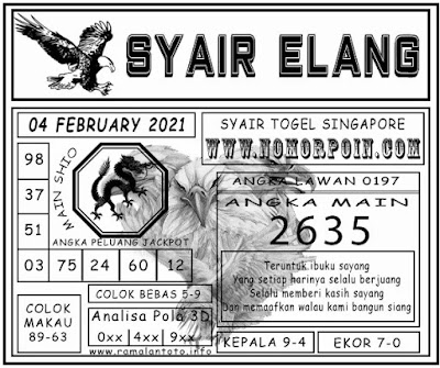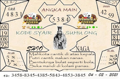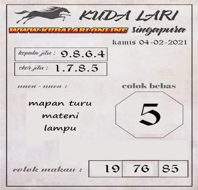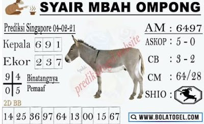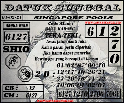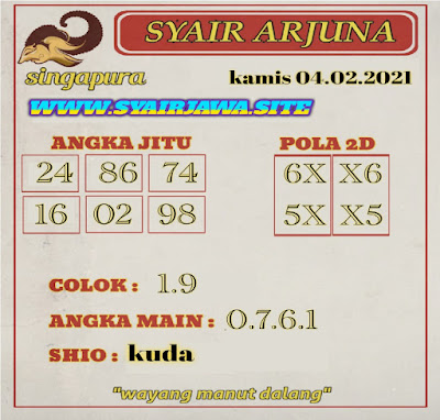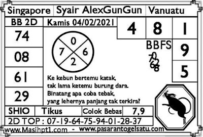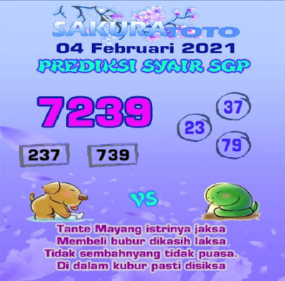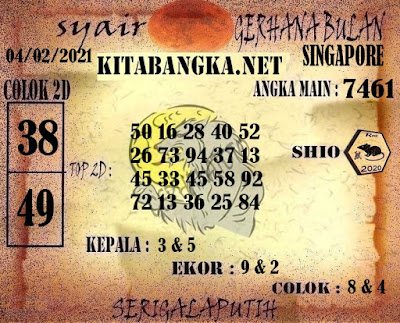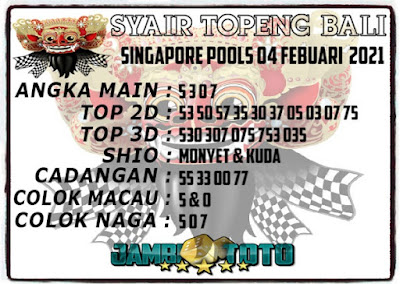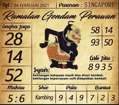 Pada dasarnya dalam semua permainan togel online ini sangatlah membutuhkan kepekaan atau kesadaran anda dalam membaca serta memprediksi nomor togel singapore. Oleh karena itu syair Togel Singapore yang kami terbitkan ini akan sangat memudahkan para pejudi online saat memprediksi angka keluaran di periode selanjutnya. kami sudah mempersiapkan dengan jelas tentang Prediksi Syair Sgp 04 Februari 2021 untuk anda para pencinta judi online.