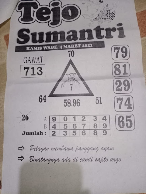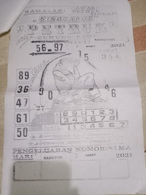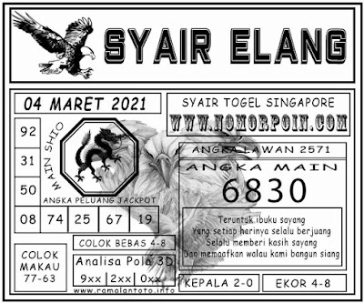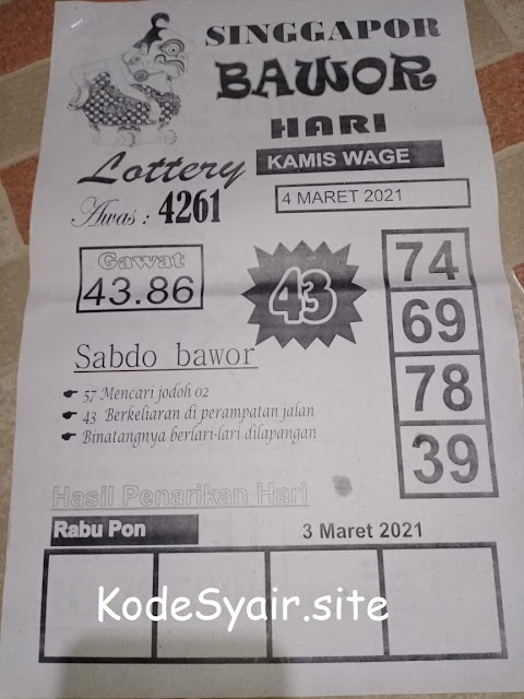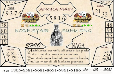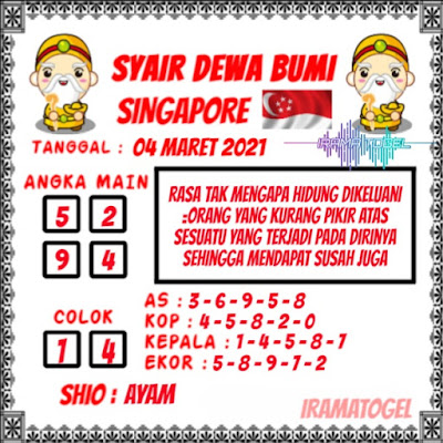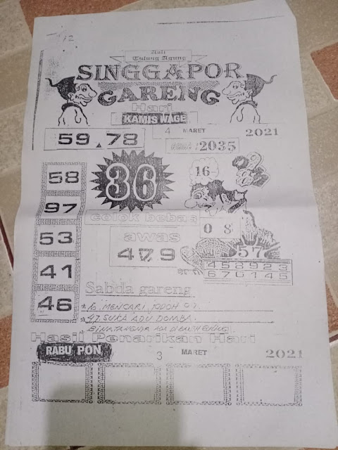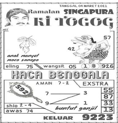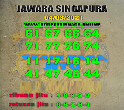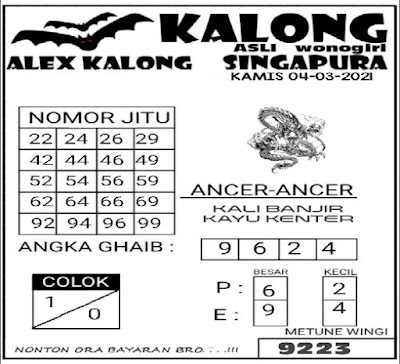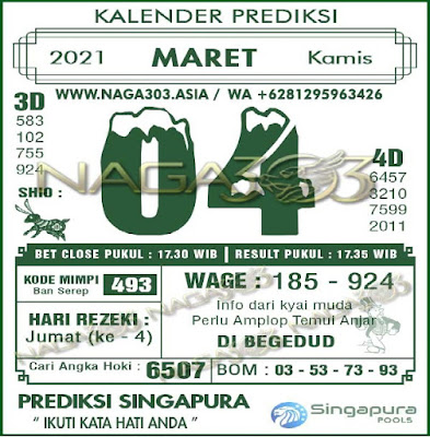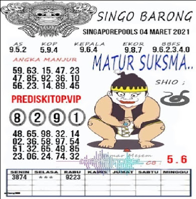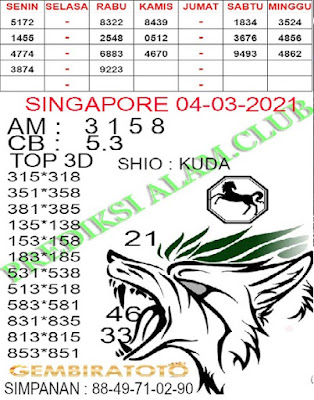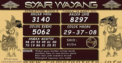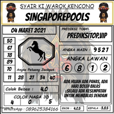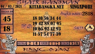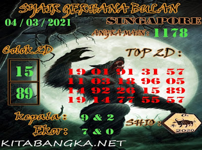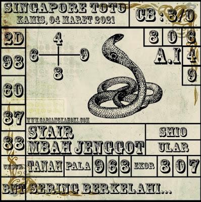 Pada dasarnya dalam semua permainan togel online ini sangatlah membutuhkan kepekaan atau kesadaran anda dalam membaca serta memprediksi nomor togel singapore. Oleh karena itu syair Togel Singapore yang kami terbitkan ini akan sangat memudahkan para pejudi online saat memprediksi angka keluaran di periode selanjutnya. kami sudah mempersiapkan dengan jelas tentang Prediksi togel Sgp 04 Maret 2021 untuk anda para pencinta judi online.