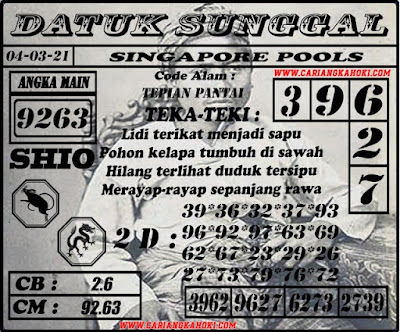 Tetap pergunakan naluri diri sendiri untuk membaca serta mengerti makna asal Syair Sgp 04 Maret 2021. Para Pemain Judi Online sebaiknya jangan terlalu terburu – buru dalam membaca makna yang berasal dari prediksi syair singapore kami. Pahamilah secara pelan serta pilih salah satu diantara syair yang paling banyak dicari oleh para pecinta togel online. Meskipun syair togel yang kami berikan ini sangat banyak serta beraneka ragam, tetapi pada dasarnya ada beberapa syair yang sangat banyak dicari seperti syair kampleng, syair pandawa, syair mbah semar, serta syair naga mas.