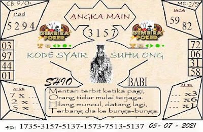 Tetap pergunakan naluri diri sendiri untuk membaca serta mengerti makna asal Syair Sgp 05 Juli 2021. Para Pemain Judi Online sebaiknya jangan terlalu terburu – buru dalam membaca makna yang berasal dari prediksi syair singapore kami. Pahamilah secara pelan serta pilih salah satu diantara syair yang paling banyak dicari oleh para pecinta togel online. Meskipun syair togel yang kami berikan ini sangat banyak serta beraneka ragam, tetapi pada dasarnya ada beberapa syair yang sangat banyak dicari seperti syair kampleng, syair pandawa, syair mbah semar, serta syair naga mas.