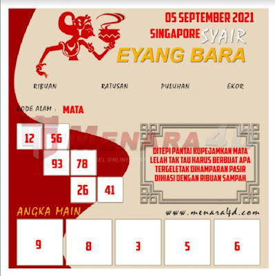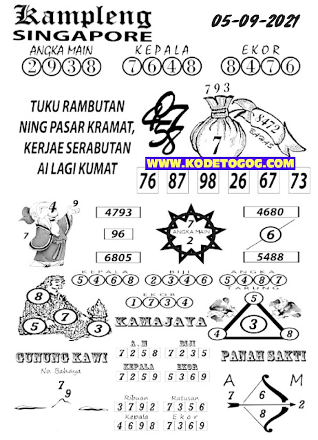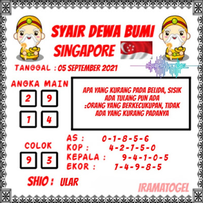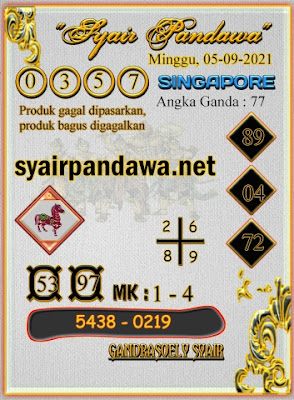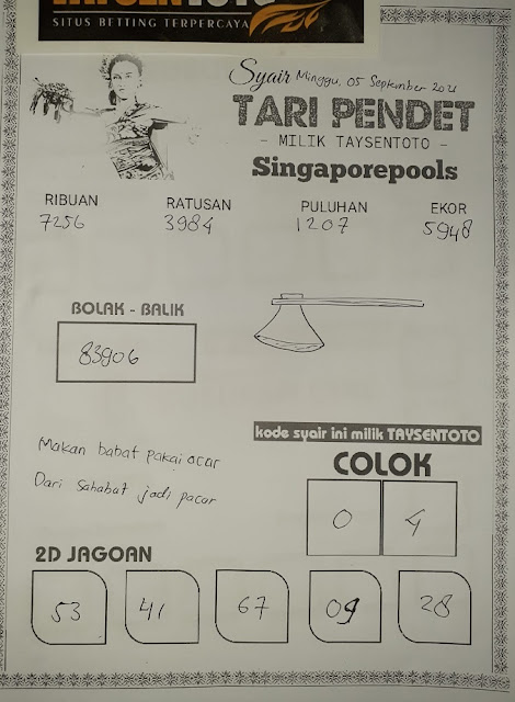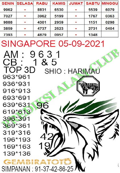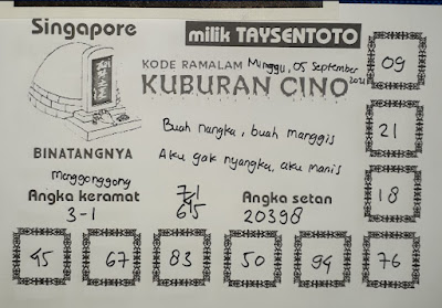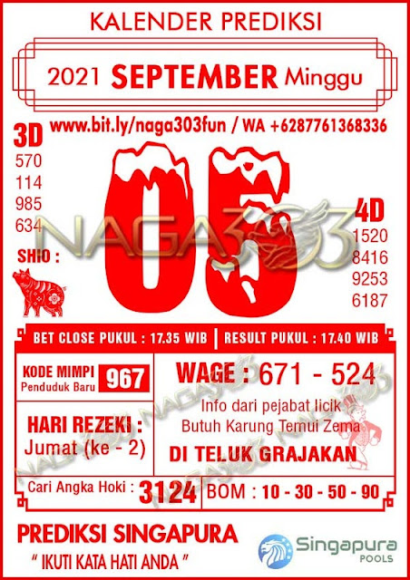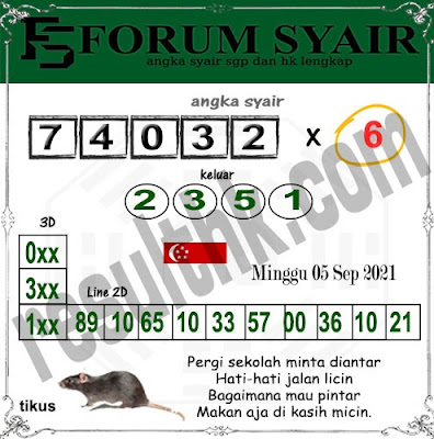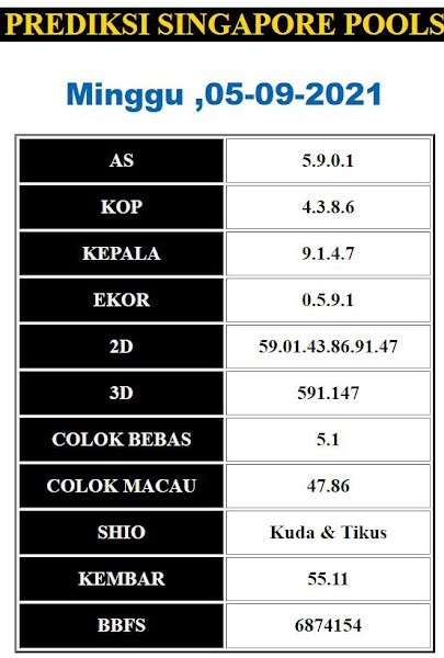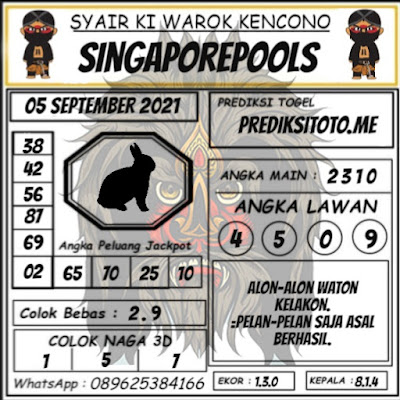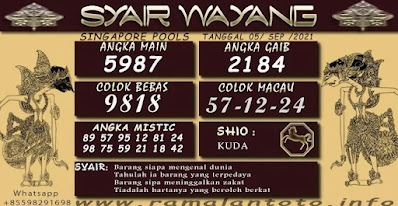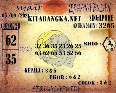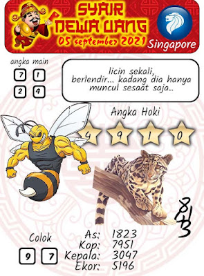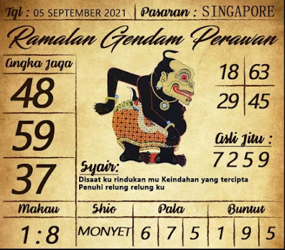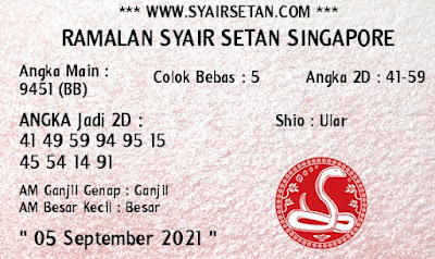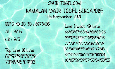 Pada dasarnya dalam semua permainan togel online ini sangatlah membutuhkan kepekaan atau kesadaran anda dalam membaca serta memprediksi nomor togel singapore. Oleh karena itu syair Togel Singapore yang kami terbitkan ini akan sangat memudahkan para pejudi online saat memprediksi angka keluaran di periode selanjutnya. kami sudah mempersiapkan dengan jelas tentang Prediksi togel Sgp 05 September 2021 untuk anda para pencinta judi online.