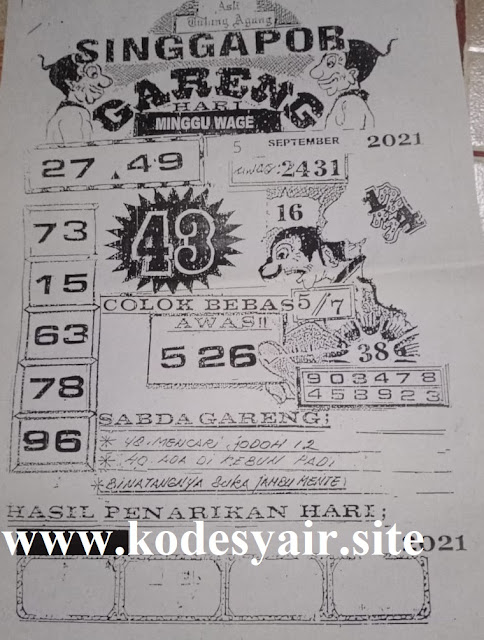 Tetap pergunakan naluri diri sendiri untuk membaca serta mengerti makna asal Syair Sgp 05 September 2021. Para Pemain Judi Online sebaiknya jangan terlalu terburu – buru dalam membaca makna yang berasal dari prediksi syair singapore kami. Pahamilah secara pelan serta pilih salah satu diantara syair yang paling banyak dicari oleh para pecinta togel online. Meskipun syair togel yang kami berikan ini sangat banyak serta beraneka ragam, tetapi pada dasarnya ada beberapa syair yang sangat banyak dicari seperti syair kampleng, syair pandawa, syair mbah semar, serta syair naga mas.