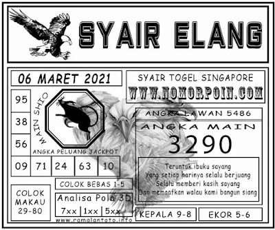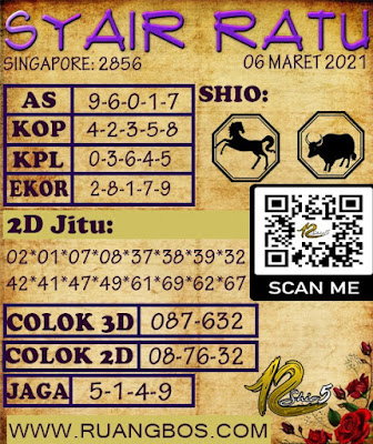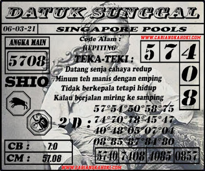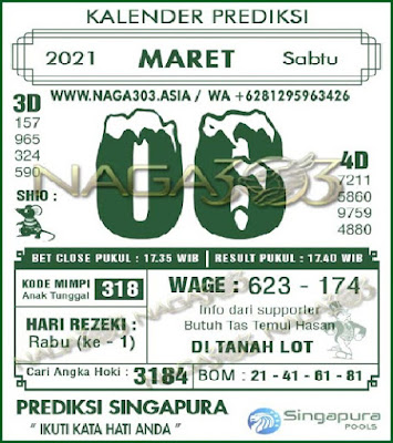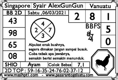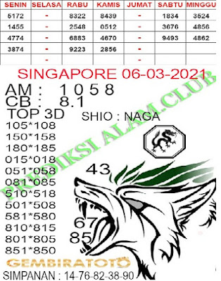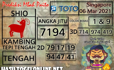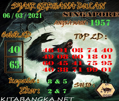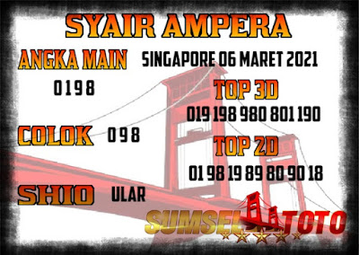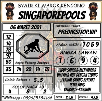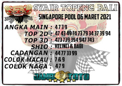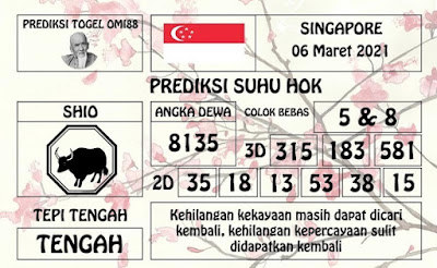 Pada dasarnya dalam semua permainan togel online ini sangatlah membutuhkan kepekaan atau kesadaran anda dalam membaca serta memprediksi nomor togel singapore. Oleh karena itu syair Togel Singapore yang kami terbitkan ini akan sangat memudahkan para pejudi online saat memprediksi angka keluaran di periode selanjutnya. kami sudah mempersiapkan dengan jelas tentang Prediksi togel Sgp 06 Maret 2021 untuk anda para pencinta judi online.