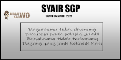 Tetap pergunakan naluri diri sendiri untuk membaca serta mengerti makna asal Syair Sgp 06 Maret 2021. Para Pemain Judi Online sebaiknya jangan terlalu terburu – buru dalam membaca makna yang berasal dari prediksi syair singapore kami. Pahamilah secara pelan serta pilih salah satu diantara syair yang paling banyak dicari oleh para pecinta togel online. Meskipun syair togel yang kami berikan ini sangat banyak serta beraneka ragam, tetapi pada dasarnya ada beberapa syair yang sangat banyak dicari seperti syair kampleng, syair pandawa, syair mbah semar, serta syair naga mas.