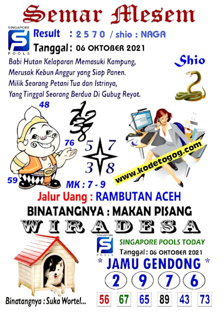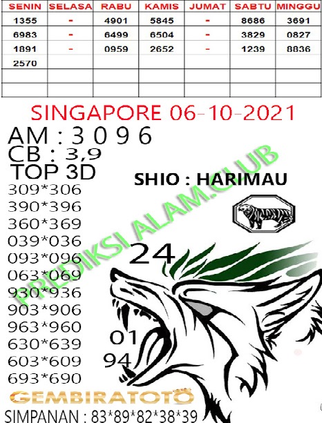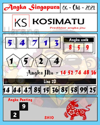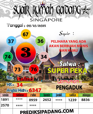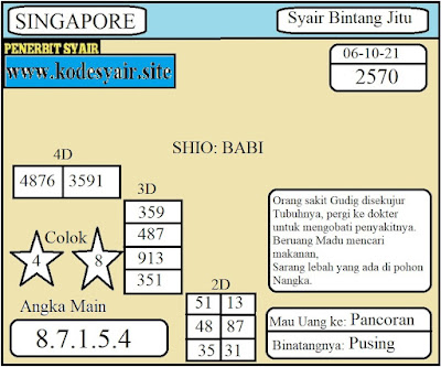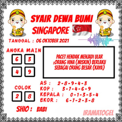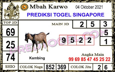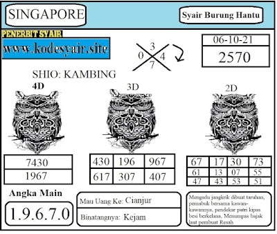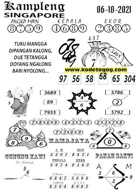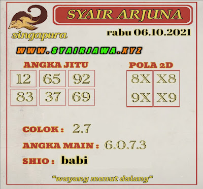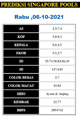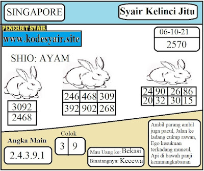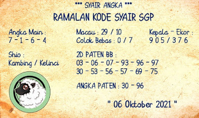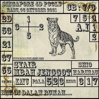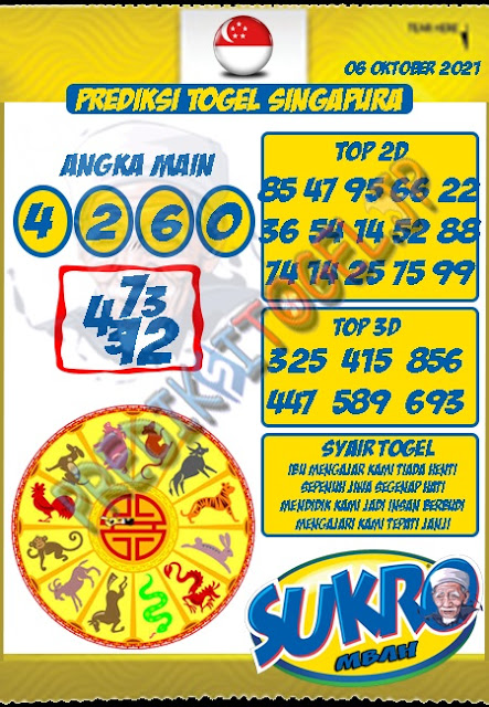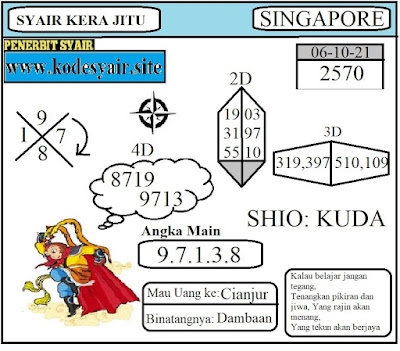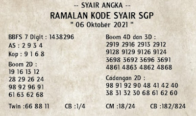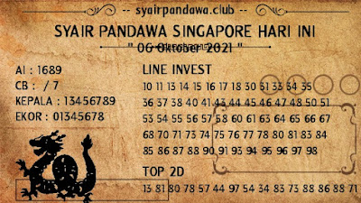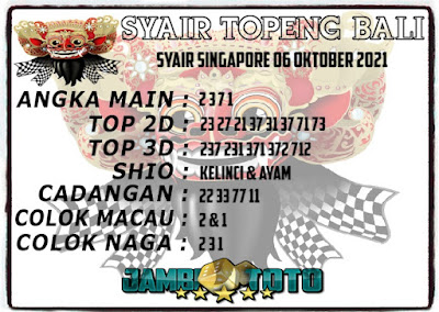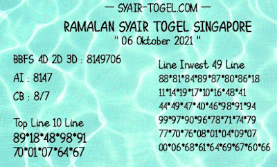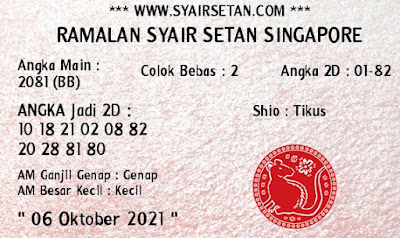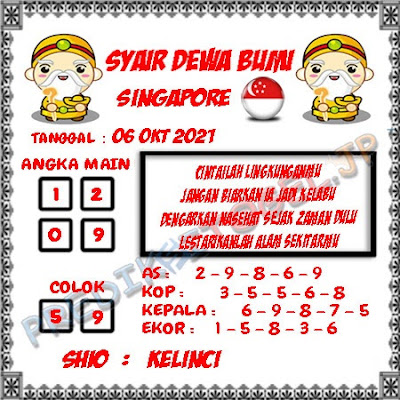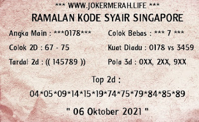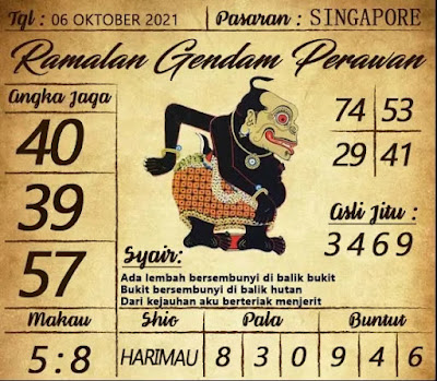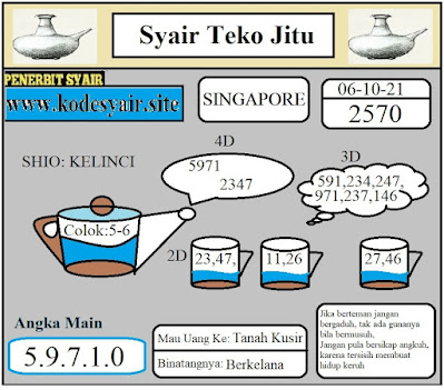 Pada dasarnya dalam semua permainan togel online ini sangatlah membutuhkan kepekaan atau kesadaran anda dalam membaca serta memprediksi nomor togel singapore. Oleh karena itu syair Togel Singapore yang kami terbitkan ini akan sangat memudahkan para pejudi online saat memprediksi angka keluaran di periode selanjutnya. kami sudah mempersiapkan dengan jelas tentang Prediksi togel Sgp 06 Oktober 2021 untuk anda para pencinta judi online.