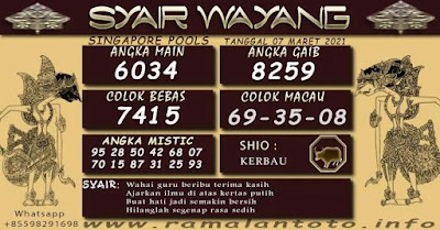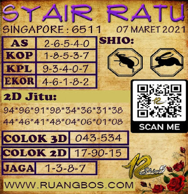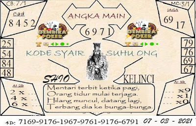Tetap pergunakan naluri diri sendiri untuk membaca serta mengerti makna asal Syair Sgp 07 Maret 2021. Para Pemain Judi Online sebaiknya jangan terlalu terburu – buru dalam membaca makna yang berasal dari prediksi syair singapore kami. Pahamilah secara pelan serta pilih salah satu diantara syair yang paling banyak dicari oleh para pecinta togel online. Meskipun syair togel yang kami berikan ini sangat banyak serta beraneka ragam, tetapi pada dasarnya ada beberapa syair yang sangat banyak dicari seperti syair kampleng, syair pandawa, syair mbah semar, serta syair naga mas.