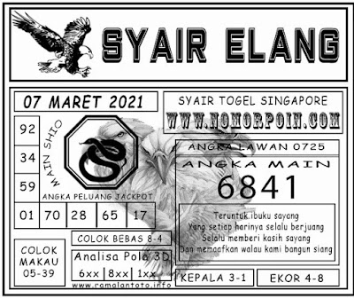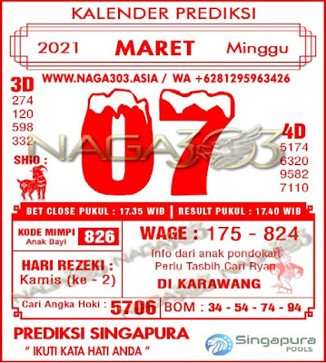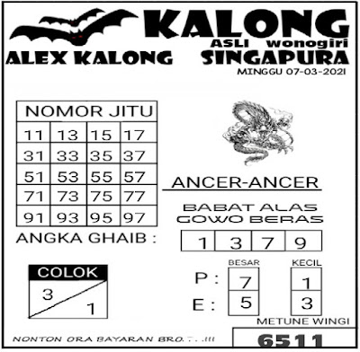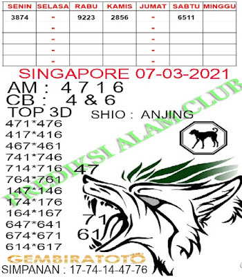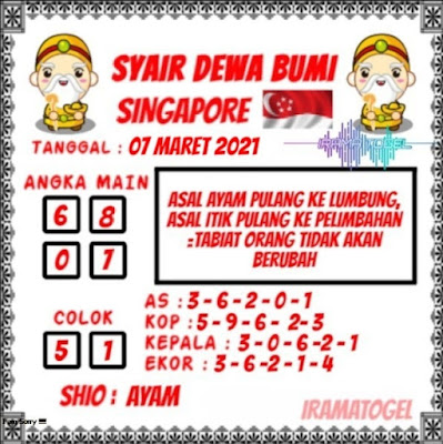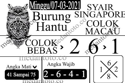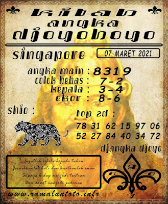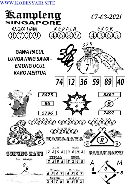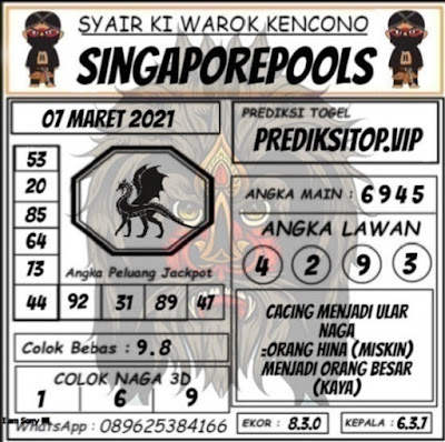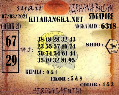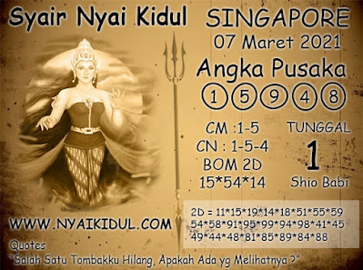 Pada dasarnya dalam semua permainan togel online ini sangatlah membutuhkan kepekaan atau kesadaran anda dalam membaca serta memprediksi nomor togel singapore. Oleh karena itu syair Togel Singapore yang kami terbitkan ini akan sangat memudahkan para pejudi online saat memprediksi angka keluaran di periode selanjutnya. kami sudah mempersiapkan dengan jelas tentang Prediksi togel Sgp 07 Maret 2021 untuk anda para pencinta judi online.