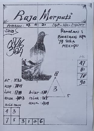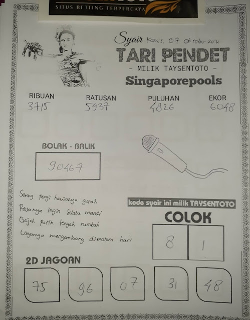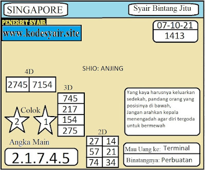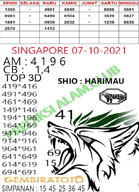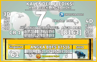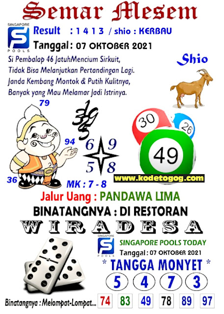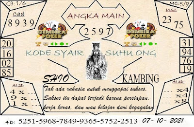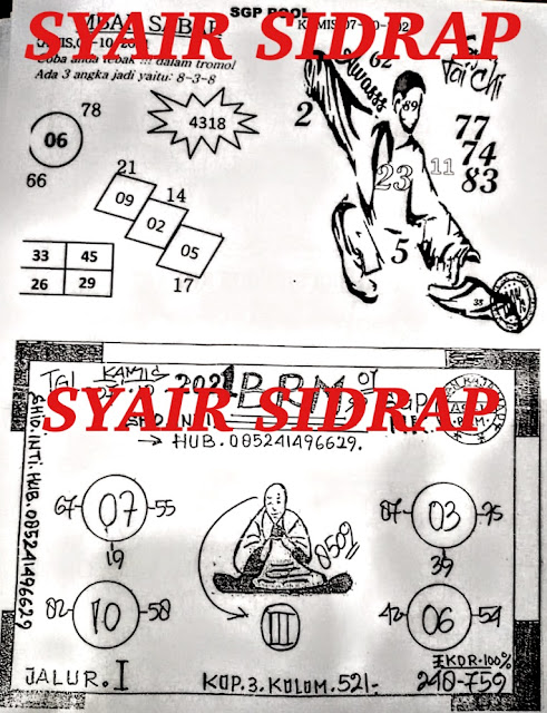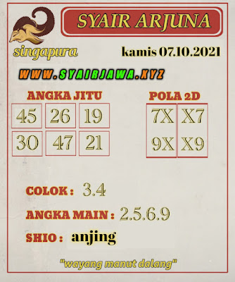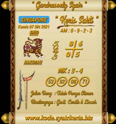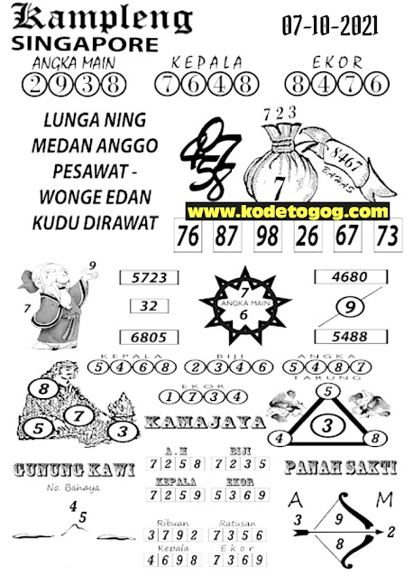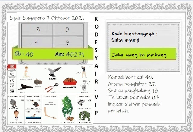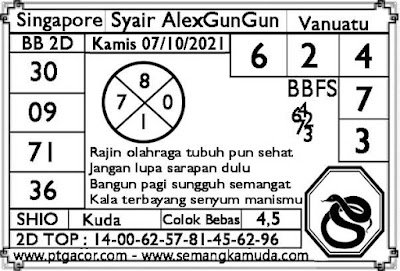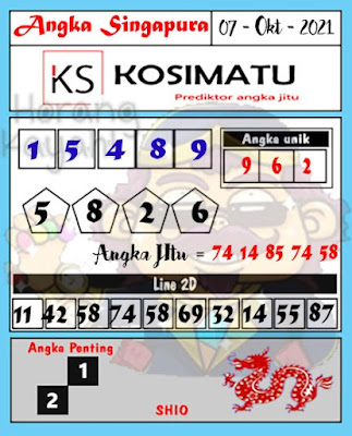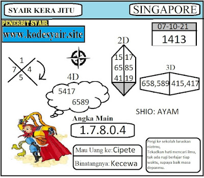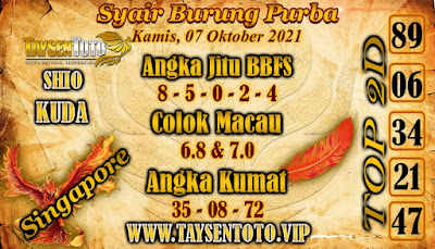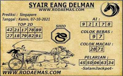 Pada dasarnya dalam semua permainan togel online ini sangatlah membutuhkan kepekaan atau kesadaran anda dalam membaca serta memprediksi nomor togel singapore. Oleh karena itu syair Togel Singapore yang kami terbitkan ini akan sangat memudahkan para pejudi online saat memprediksi angka keluaran di periode selanjutnya. kami sudah mempersiapkan dengan jelas tentang Prediksi togel Sgp 07 Oktober 2021 untuk anda para pencinta judi online.