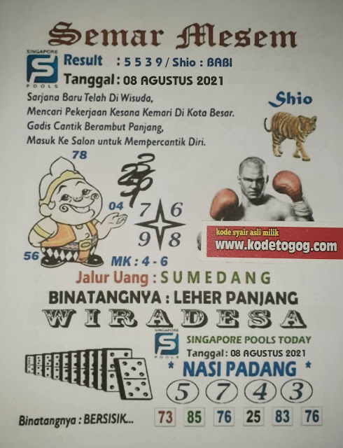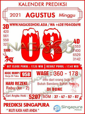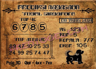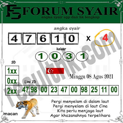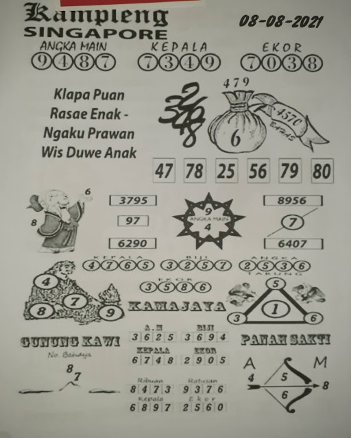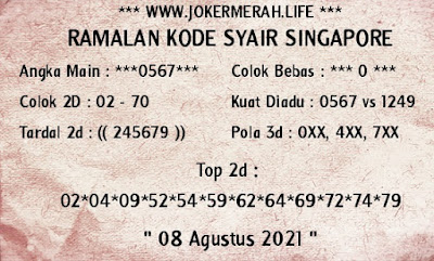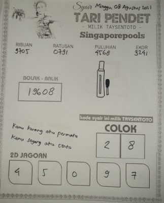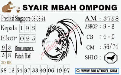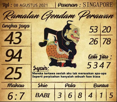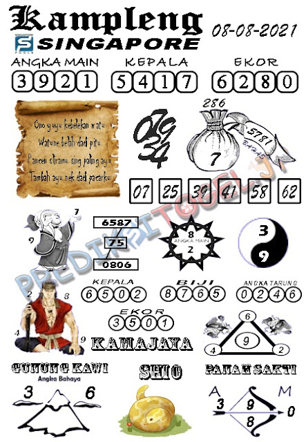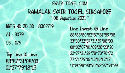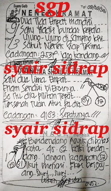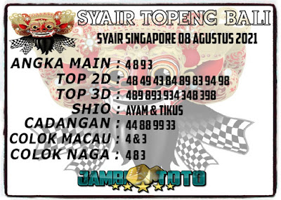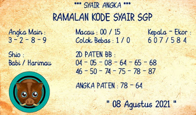 Pada dasarnya dalam semua permainan togel online ini sangatlah membutuhkan kepekaan atau kesadaran anda dalam membaca serta memprediksi nomor togel singapore. Oleh karena itu syair Togel Singapore yang kami terbitkan ini akan sangat memudahkan para pejudi online saat memprediksi angka keluaran di periode selanjutnya. kami sudah mempersiapkan dengan jelas tentang Prediksi togel Sgp 08 Agustus 2021 untuk anda para pencinta judi online.