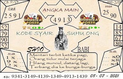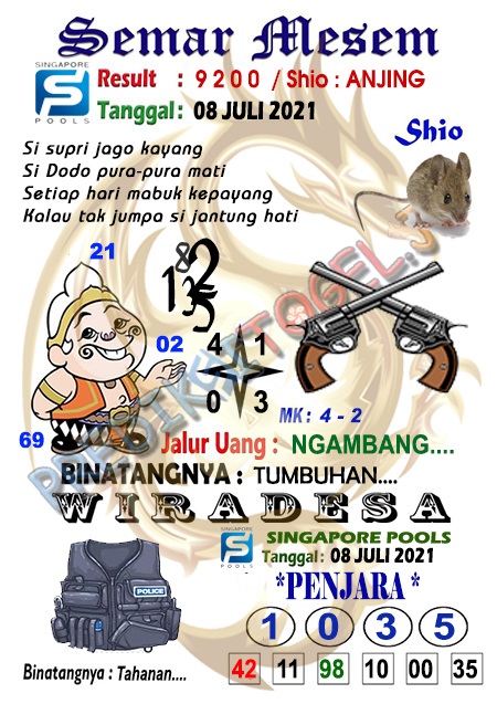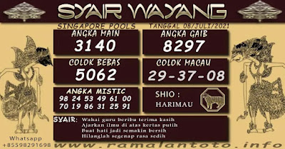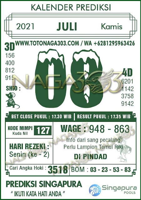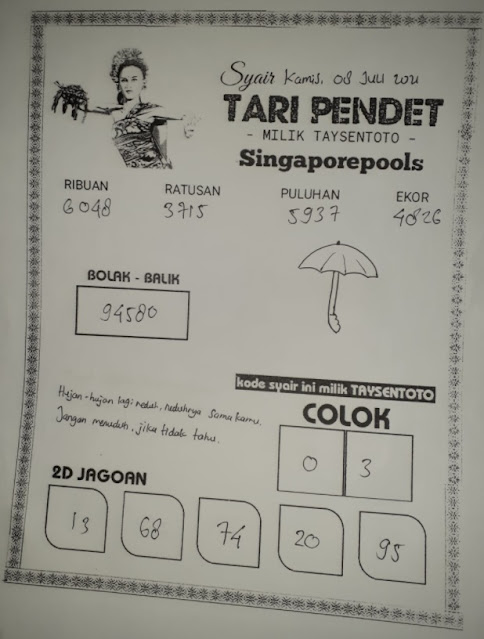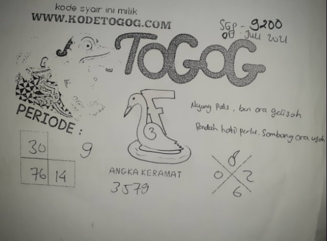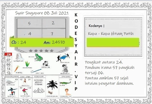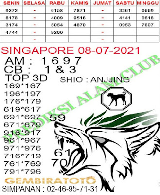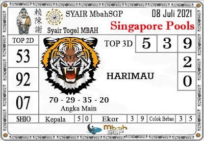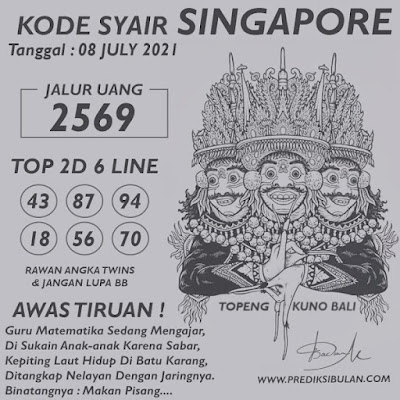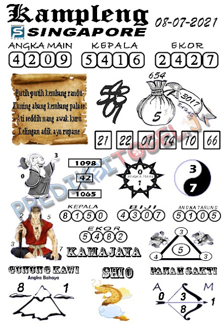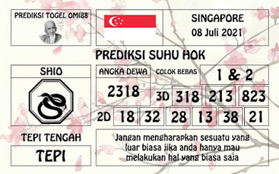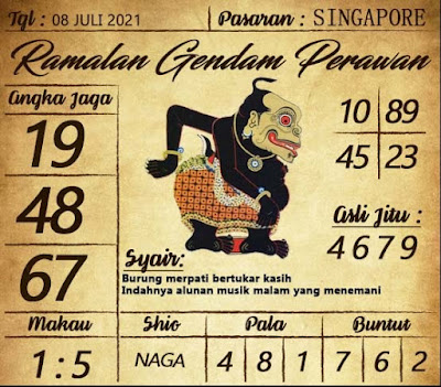Pada dasarnya dalam semua permainan togel online ini sangatlah membutuhkan kepekaan atau kesadaran anda dalam membaca serta memprediksi nomor togel singapore. Oleh karena itu syair Togel Singapore yang kami terbitkan ini akan sangat memudahkan para pejudi online saat memprediksi angka keluaran di periode selanjutnya. kami sudah mempersiapkan dengan jelas tentang Prediksi togel Sgp 08 Juli 2021 untuk anda para pencinta judi online.