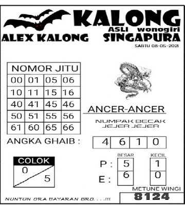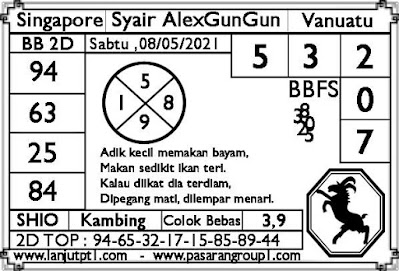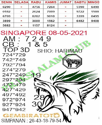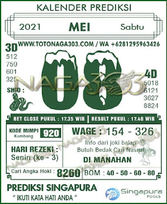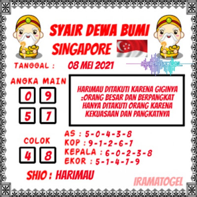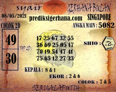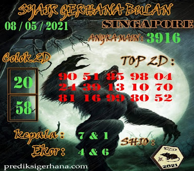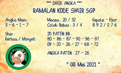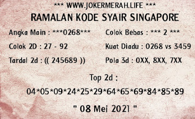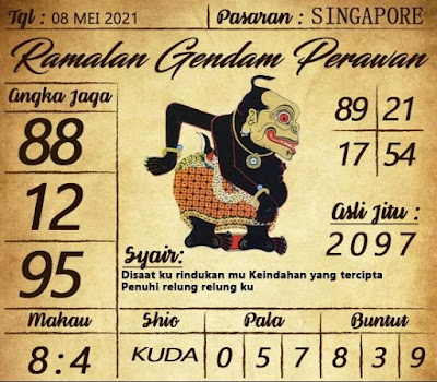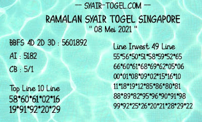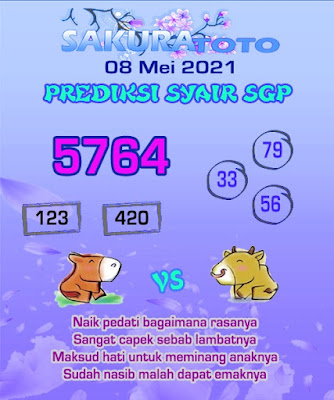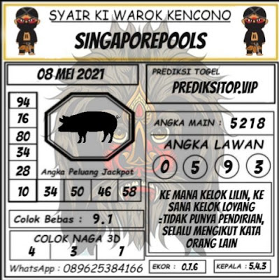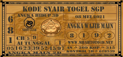 Pada dasarnya dalam semua permainan togel online ini sangatlah membutuhkan kepekaan atau kesadaran anda dalam membaca serta memprediksi nomor togel singapore. Oleh karena itu syair Togel Singapore yang kami terbitkan ini akan sangat memudahkan para pejudi online saat memprediksi angka keluaran di periode selanjutnya. kami sudah mempersiapkan dengan jelas tentang Prediksi togel Sgp 08 Mei 2021 untuk anda para pencinta judi online.