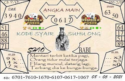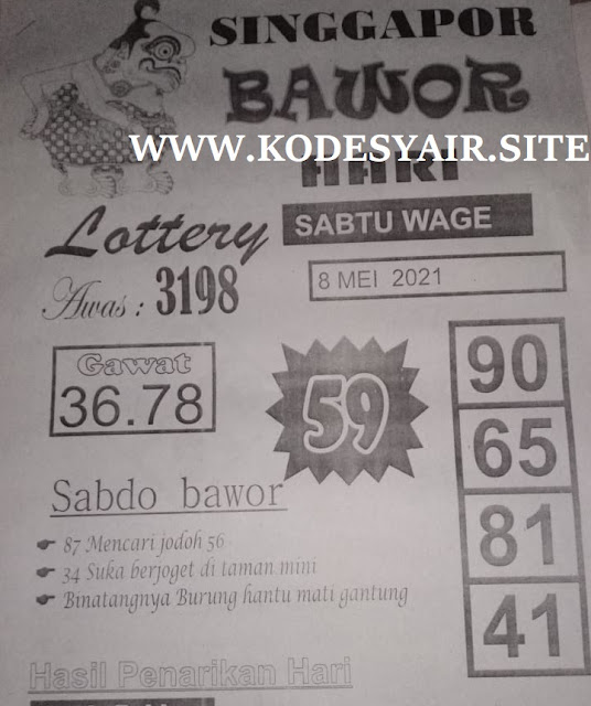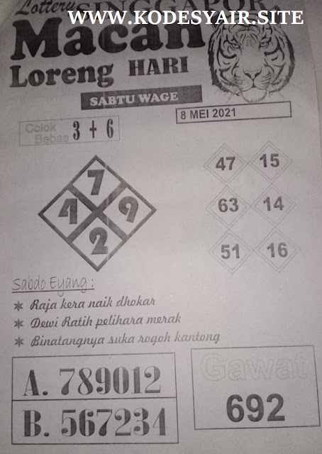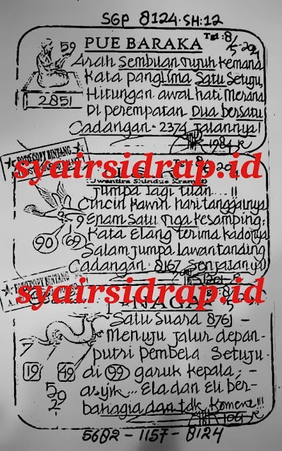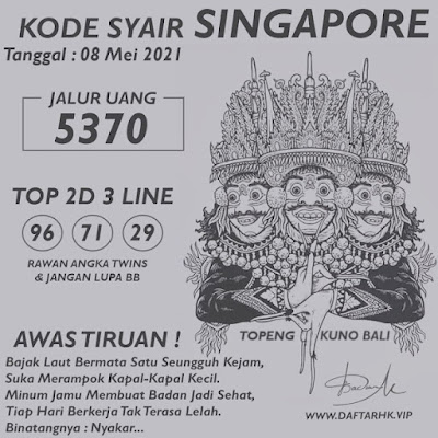 Tetap pergunakan naluri diri sendiri untuk membaca serta mengerti makna asal Syair Sgp 08 Mei 2021. Para Pemain Judi Online sebaiknya jangan terlalu terburu – buru dalam membaca makna yang berasal dari prediksi syair singapore kami. Pahamilah secara pelan serta pilih salah satu diantara syair yang paling banyak dicari oleh para pecinta togel online. Meskipun syair togel yang kami berikan ini sangat banyak serta beraneka ragam, tetapi pada dasarnya ada beberapa syair yang sangat banyak dicari seperti syair kampleng, syair pandawa, syair mbah semar, serta syair naga mas.