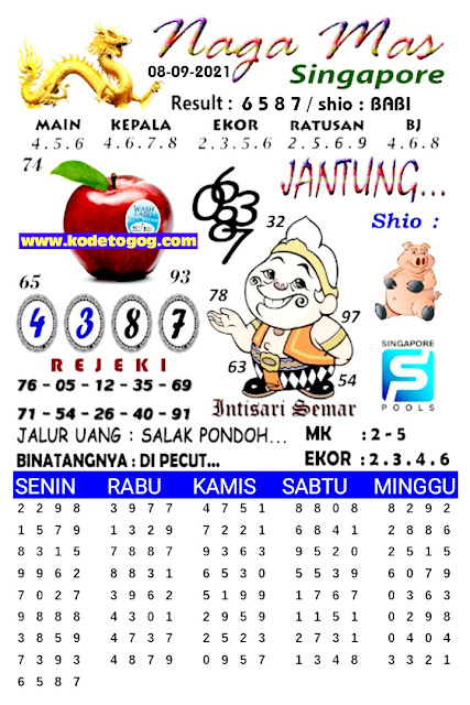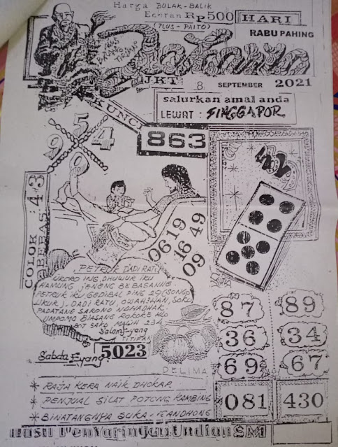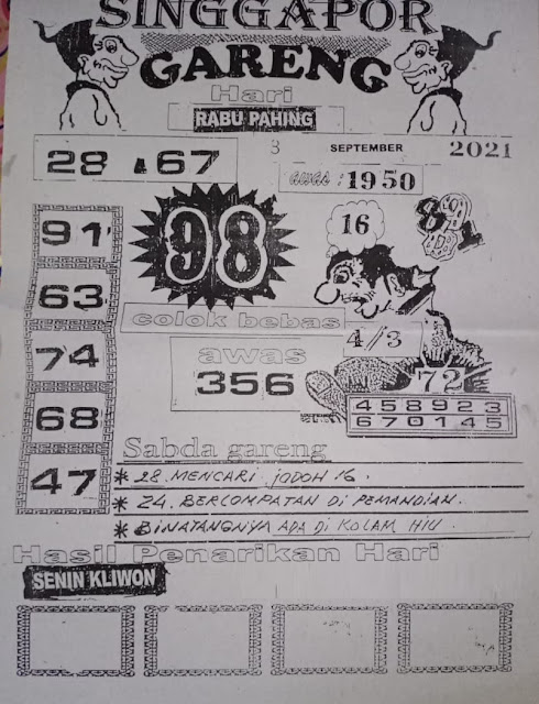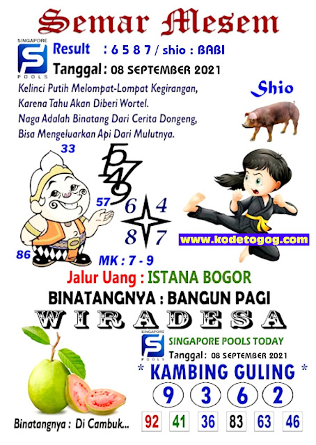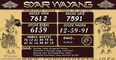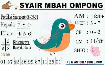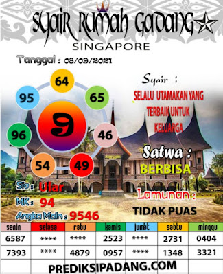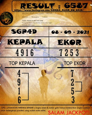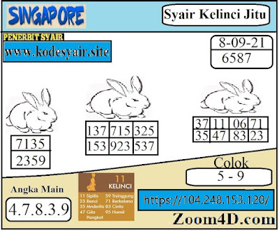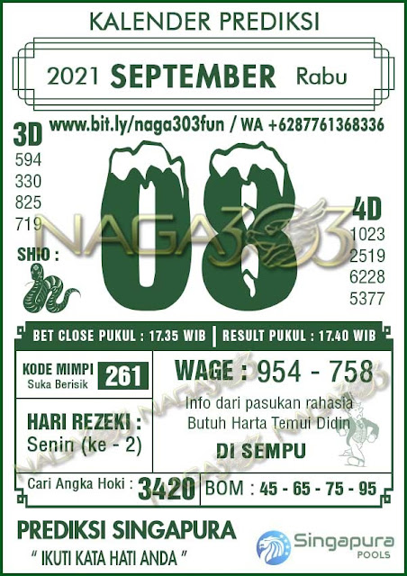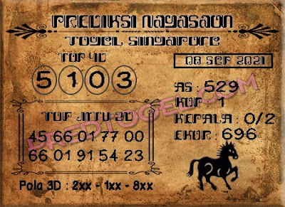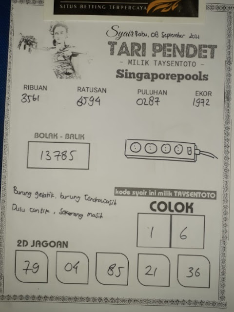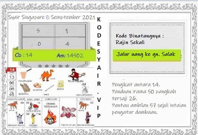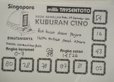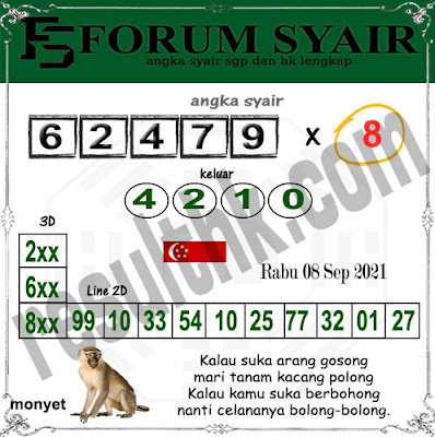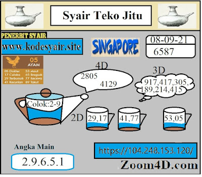 Pada dasarnya dalam semua permainan togel online ini sangatlah membutuhkan kepekaan atau kesadaran anda dalam membaca serta memprediksi nomor togel singapore. Oleh karena itu syair Togel Singapore yang kami terbitkan ini akan sangat memudahkan para pejudi online saat memprediksi angka keluaran di periode selanjutnya. kami sudah mempersiapkan dengan jelas tentang Prediksi togel Sgp 08 September 2021 untuk anda para pencinta judi online.
