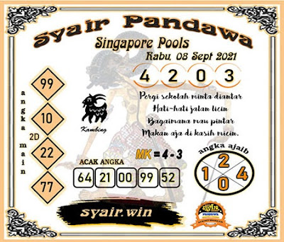 Tetap pergunakan naluri diri sendiri untuk membaca serta mengerti makna asal Syair Sgp 08 September 2021. Para Pemain Judi Online sebaiknya jangan terlalu terburu – buru dalam membaca makna yang berasal dari prediksi syair singapore kami. Pahamilah secara pelan serta pilih salah satu diantara syair yang paling banyak dicari oleh para pecinta togel online. Meskipun syair togel yang kami berikan ini sangat banyak serta beraneka ragam, tetapi pada dasarnya ada beberapa syair yang sangat banyak dicari seperti syair kampleng, syair pandawa, syair mbah semar, serta syair naga mas.