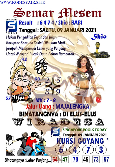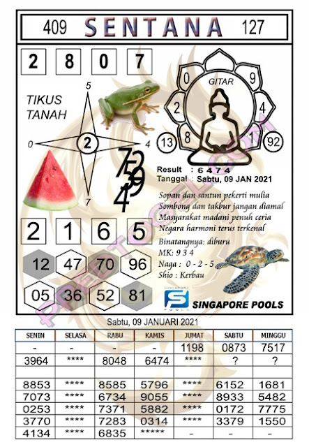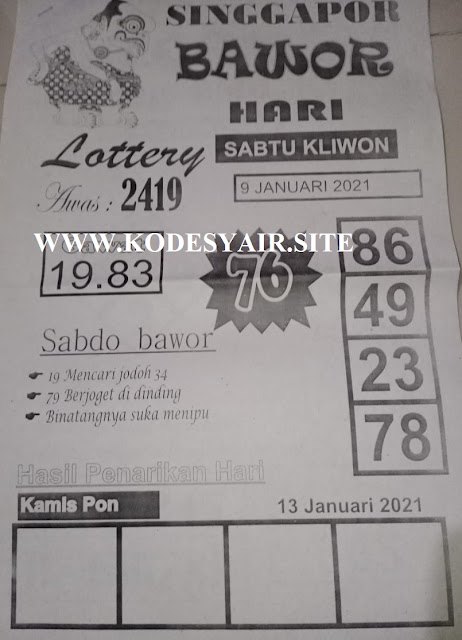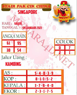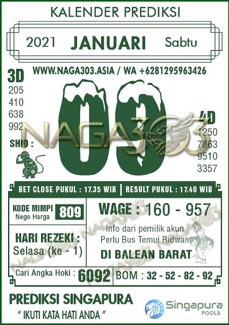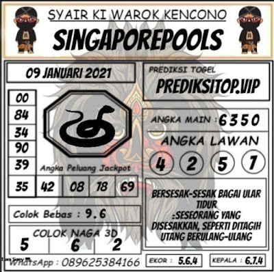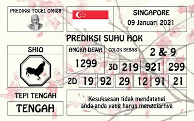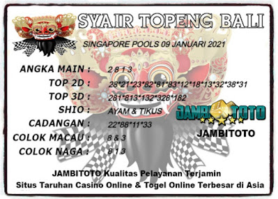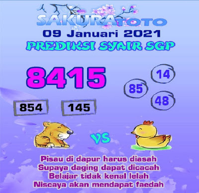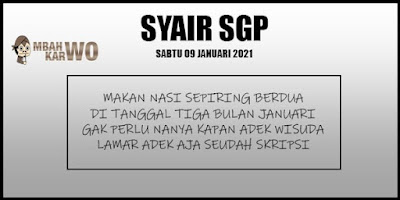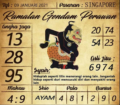 Pada dasarnya dalam semua permainan togel online ini sangatlah membutuhkan kepekaan atau kesadaran anda dalam membaca serta memprediksi nomor togel singapore. Oleh karena itu syair Togel Singapore yang kami terbitkan ini akan sangat memudahkan para pejudi online saat memprediksi angka keluaran di periode selanjutnya. kami sudah mempersiapkan dengan jelas tentang Prediksi togel Sgp 09 Januari 2021 untuk anda para pencinta judi online.