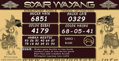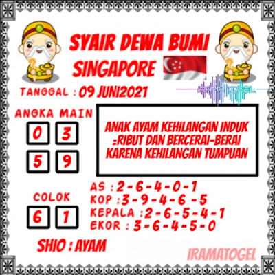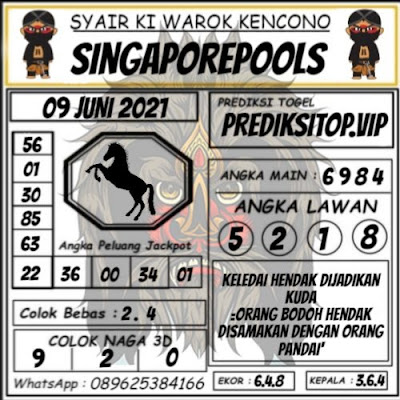 Pada dasarnya dalam semua permainan togel online ini sangatlah membutuhkan kepekaan atau kesadaran anda dalam membaca serta memprediksi nomor togel singapore. Oleh karena itu syair Togel Singapore yang kami terbitkan ini akan sangat memudahkan para pejudi online saat memprediksi angka keluaran di periode selanjutnya. kami sudah mempersiapkan dengan jelas tentang Prediksi togel Sgp 09 Jumi 2021 untuk anda para pencinta judi online.