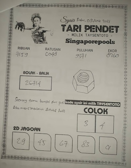 Tetap pergunakan naluri diri sendiri untuk membaca serta mengerti makna asal Syair Sgp 09 Juni 2021. Para Pemain Judi Online sebaiknya jangan terlalu terburu – buru dalam membaca makna yang berasal dari prediksi syair singapore kami. Pahamilah secara pelan serta pilih salah satu diantara syair yang paling banyak dicari oleh para pecinta togel online. Meskipun syair togel yang kami berikan ini sangat banyak serta beraneka ragam, tetapi pada dasarnya ada beberapa syair yang sangat banyak dicari seperti syair kampleng, syair pandawa, syair mbah semar, serta syair naga mas.