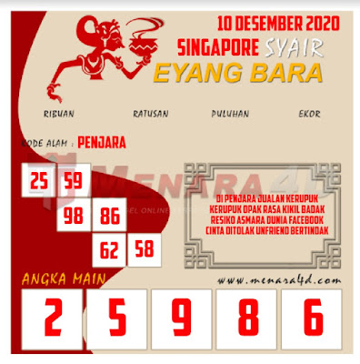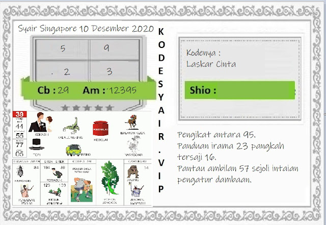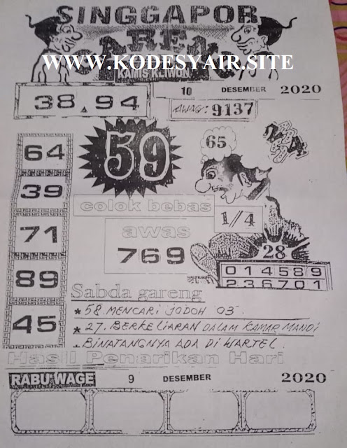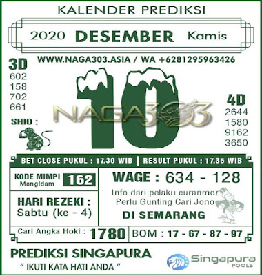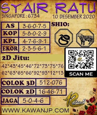 Pada dasarnya dalam semua permainan togel online ini sangatlah membutuhkan kepekaan atau kesadaran anda dalam membaca serta memprediksi nomor togel singapore. Oleh karena itu syair Togel Singapore yang kami terbitkan ini akan sangat memudahkan para pejudi online saat memprediksi angka keluaran di periode selanjutnya. kami sudah mempersiapkan dengan jelas tentang Prediksi Togel Singapore10 Desember 2020 untuk anda para pencinta judi online.