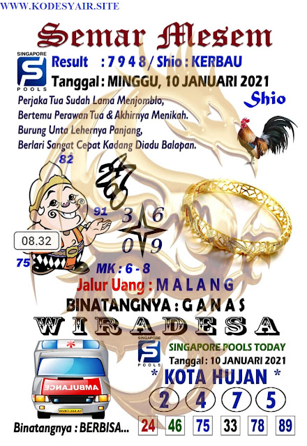Pada dasarnya dalam semua permainan togel online ini sangatlah membutuhkan kepekaan atau kesadaran anda dalam membaca serta memprediksi nomor togel singapore. Oleh karena itu syair Togel Singapore yang kami terbitkan ini akan sangat memudahkan para pejudi online saat memprediksi angka keluaran di periode selanjutnya. kami sudah mempersiapkan dengan jelas tentang Prediksi Togel Sgp 10 Januari 2021 untuk anda para pencinta judi online.