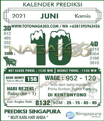 Pada dasarnya dalam semua permainan togel online ini sangatlah membutuhkan kepekaan atau kesadaran anda dalam membaca serta memprediksi nomor togel singapore. Oleh karena itu syair Togel Singapore yang kami terbitkan ini akan sangat memudahkan para pejudi online saat memprediksi angka keluaran di periode selanjutnya. kami sudah mempersiapkan dengan jelas tentang Prediksi togel Sgp 10 Jumi 2021 untuk anda para pencinta judi online.