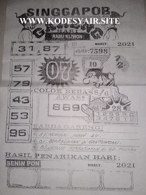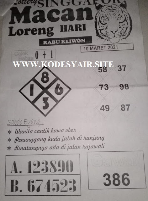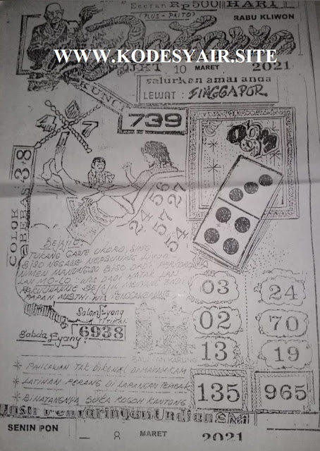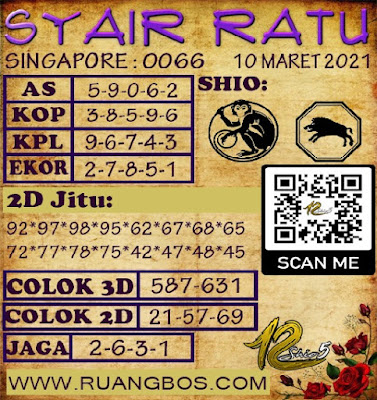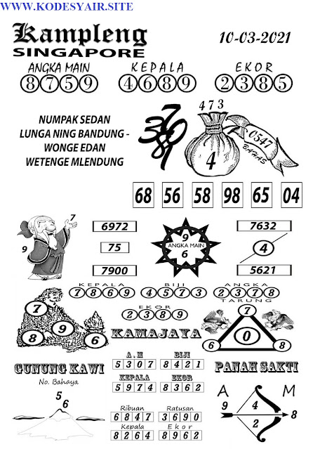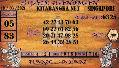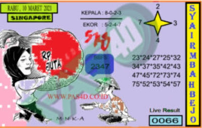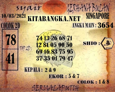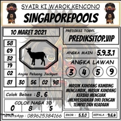 Pada dasarnya dalam semua permainan togel online ini sangatlah membutuhkan kepekaan atau kesadaran anda dalam membaca serta memprediksi nomor togel singapore. Oleh karena itu syair Togel Singapore yang kami terbitkan ini akan sangat memudahkan para pejudi online saat memprediksi angka keluaran di periode selanjutnya. kami sudah mempersiapkan dengan jelas tentang Prediksi togel Sgp 10 Maret 2021 untuk anda para pencinta judi online.