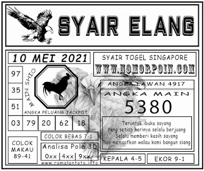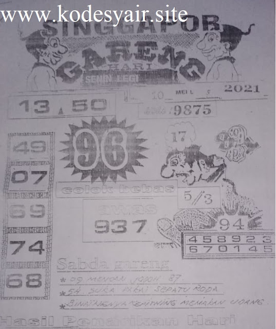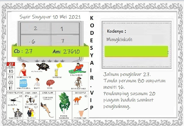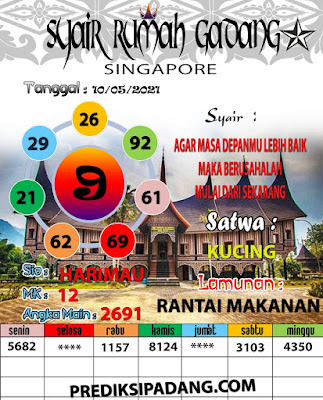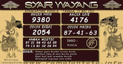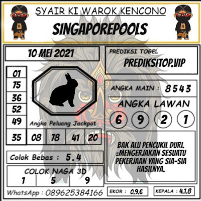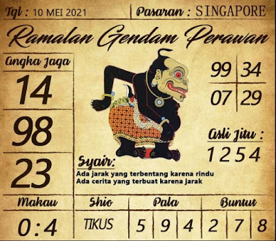 Pada dasarnya dalam semua permainan togel online ini sangatlah membutuhkan kepekaan atau kesadaran anda dalam membaca serta memprediksi nomor togel singapore. Oleh karena itu syair Togel Singapore yang kami terbitkan ini akan sangat memudahkan para pejudi online saat memprediksi angka keluaran di periode selanjutnya. kami sudah mempersiapkan dengan jelas tentang Prediksi togel Sgp 10 Mei 2021 untuk anda para pencinta judi online.