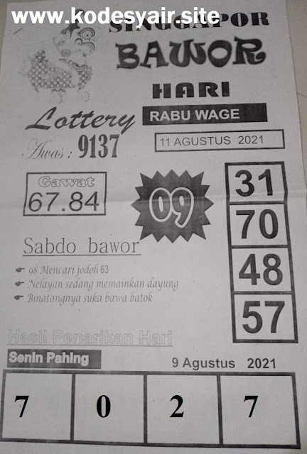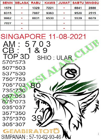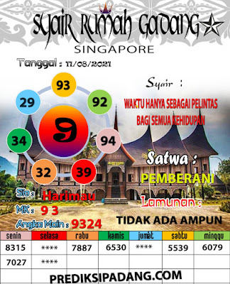 Syair Singapore 11 Agustus 2021