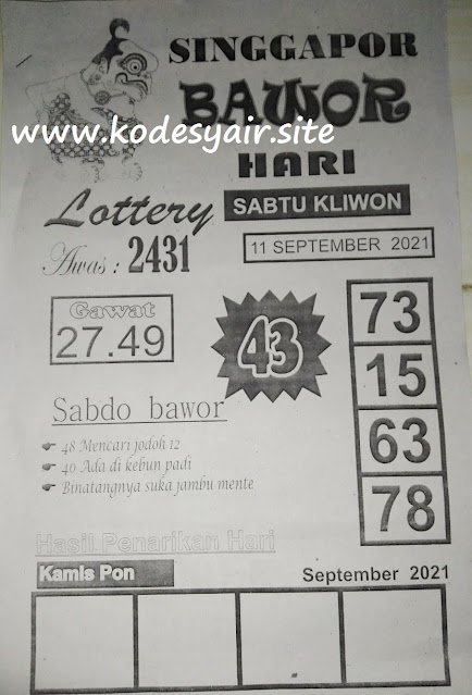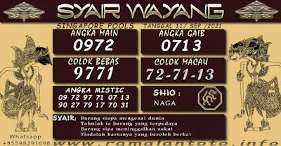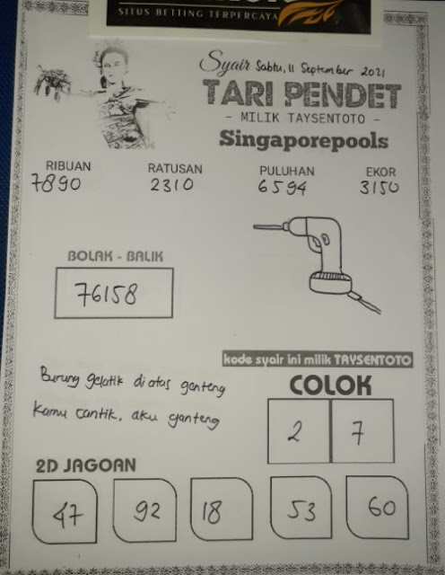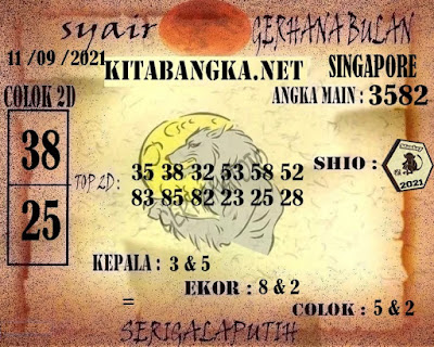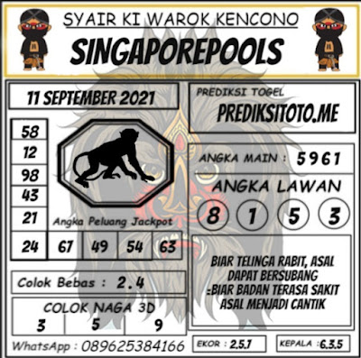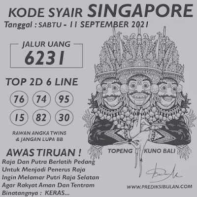 Pada dasarnya dalam semua permainan togel online ini sangatlah membutuhkan kepekaan atau kesadaran anda dalam membaca serta memprediksi nomor togel singapore. Oleh karena itu syair Togel Singapore yang kami terbitkan ini akan sangat memudahkan para pejudi online saat memprediksi angka keluaran di periode selanjutnya. kami sudah mempersiapkan dengan jelas tentang Prediksi togel Sgp 11 September 2021 untuk anda para pencinta judi online.
