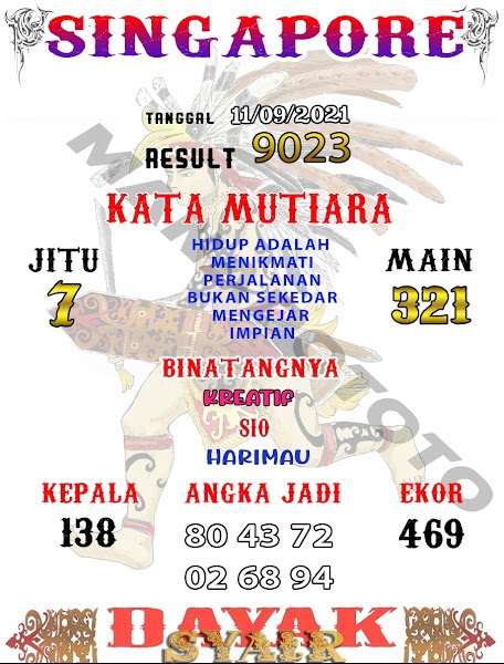 Tetap pergunakan naluri diri sendiri untuk membaca serta mengerti makna asal Syair Sgp 11 September 2021. Para Pemain Judi Online sebaiknya jangan terlalu terburu – buru dalam membaca makna yang berasal dari prediksi syair singapore kami. Pahamilah secara pelan serta pilih salah satu diantara syair yang paling banyak dicari oleh para pecinta togel online. Meskipun syair togel yang kami berikan ini sangat banyak serta beraneka ragam, tetapi pada dasarnya ada beberapa syair yang sangat banyak dicari seperti syair kampleng, syair pandawa, syair mbah semar, serta syair naga mas.