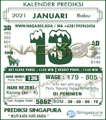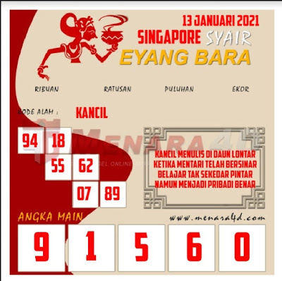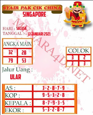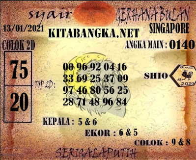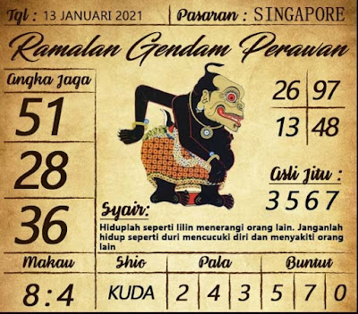 Pada dasarnya dalam semua permainan togel online ini sangatlah membutuhkan kepekaan atau kesadaran anda dalam membaca serta memprediksi nomor togel singapore. Oleh karena itu syair Togel Singapore yang kami terbitkan ini akan sangat memudahkan para pejudi online saat memprediksi angka keluaran di periode selanjutnya. kami sudah mempersiapkan dengan jelas tentang Prediksi togel Sgp 13 Januari 2021 untuk anda para pencinta judi online.