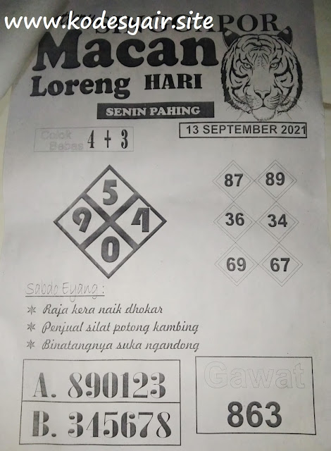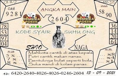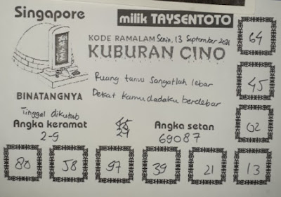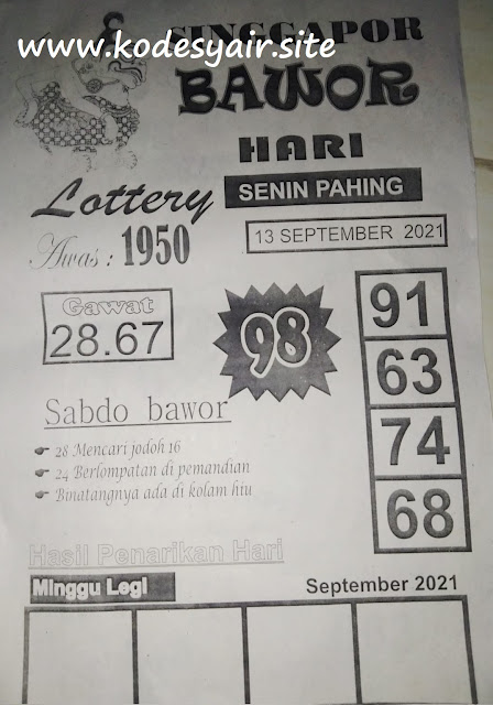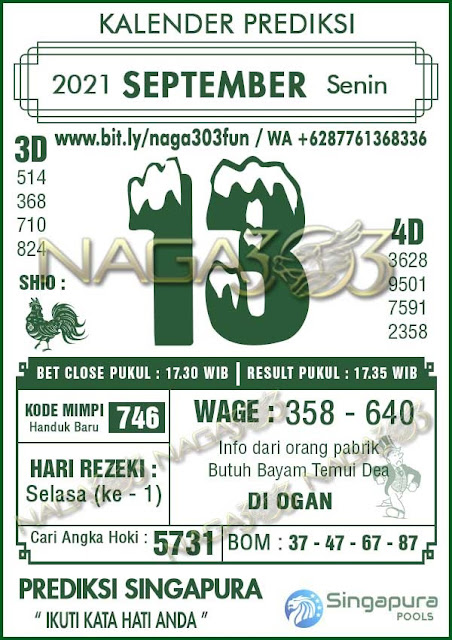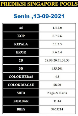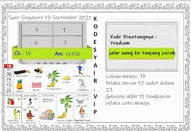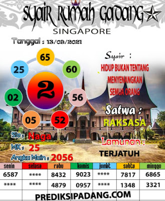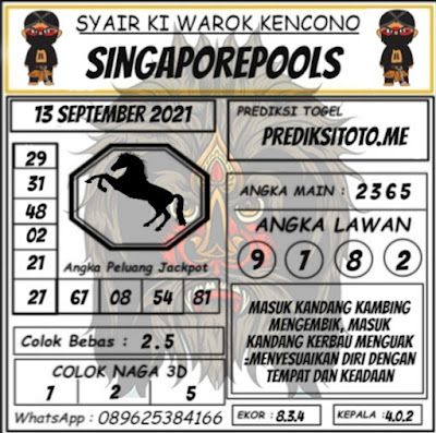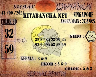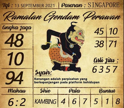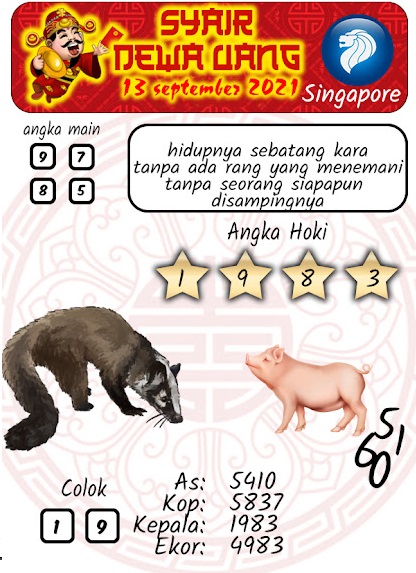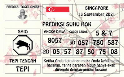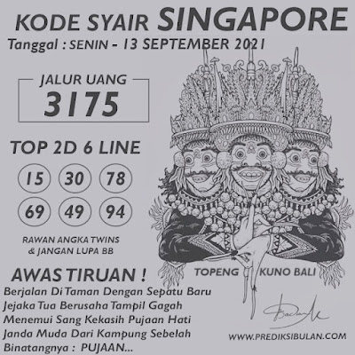 Pada dasarnya dalam semua permainan togel online ini sangatlah membutuhkan kepekaan atau kesadaran anda dalam membaca serta memprediksi nomor togel singapore. Oleh karena  itu syair Togel Singapore yang kami terbitkan ini akan sangat memudahkan para pejudi online saat memprediksi angka keluaran di periode selanjutnya. kami  sudah mempersiapkan dengan jelas tentang Prediksi togel Sgp 13 September 2021 untuk anda para pencinta judi online.