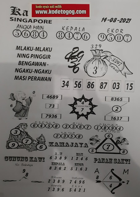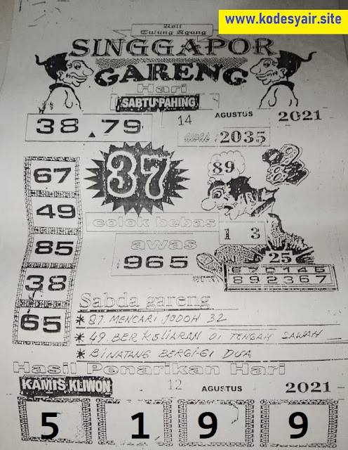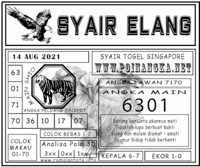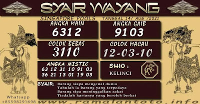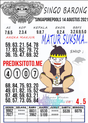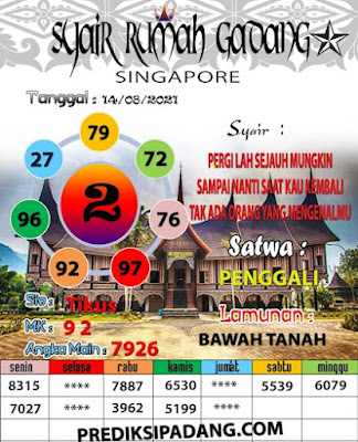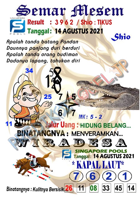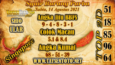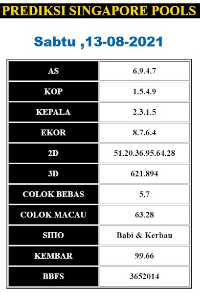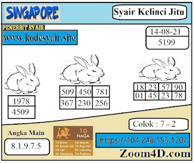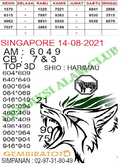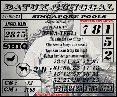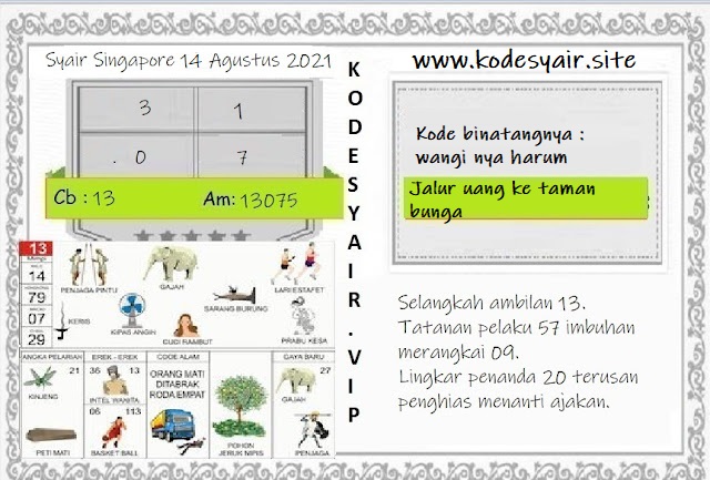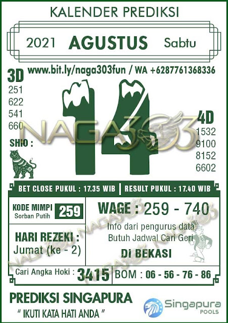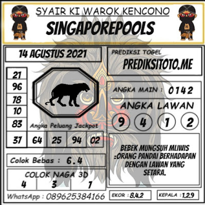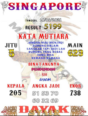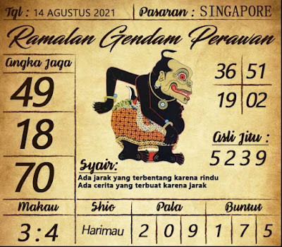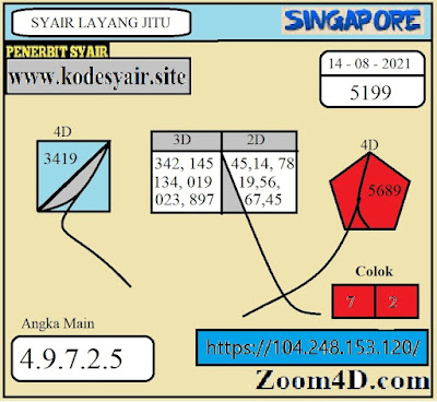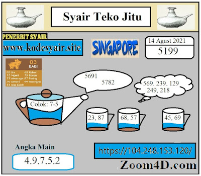 Pada dasarnya dalam semua permainan togel online ini sangatlah membutuhkan kepekaan atau kesadaran anda dalam membaca serta memprediksi nomor togel singapore. Oleh karena itu syair Togel Singapore yang kami terbitkan ini akan sangat memudahkan para pejudi online saat memprediksi angka keluaran di periode selanjutnya. kami sudah mempersiapkan dengan jelas tentang Prediksi togel Sgp 14 Agustus 2021 untuk anda para pencinta judi online.