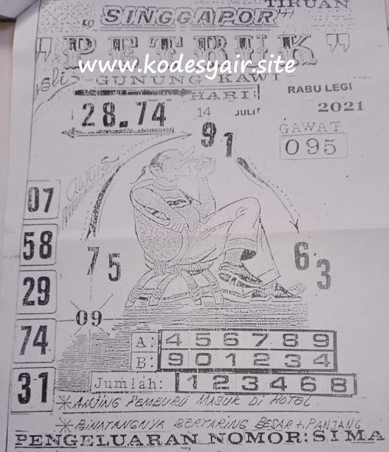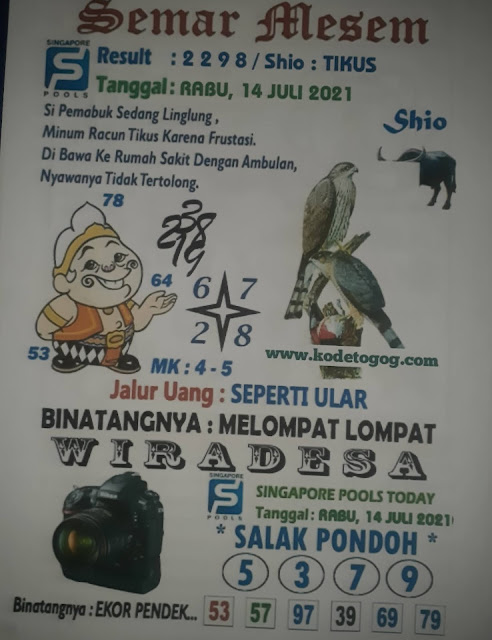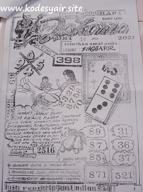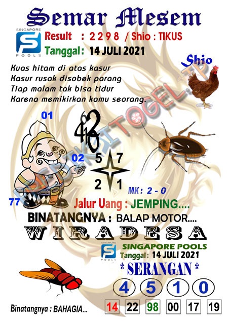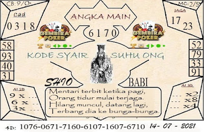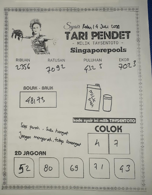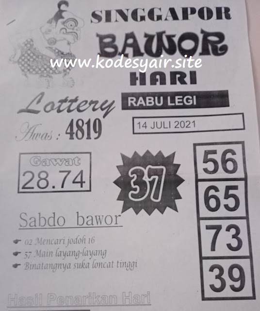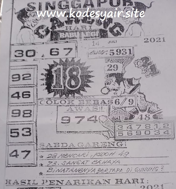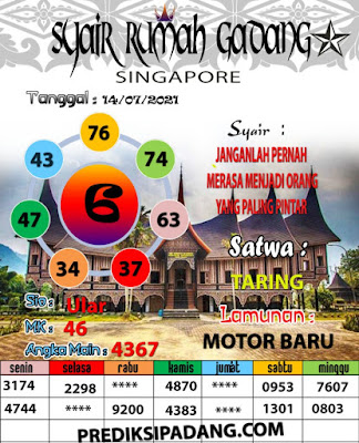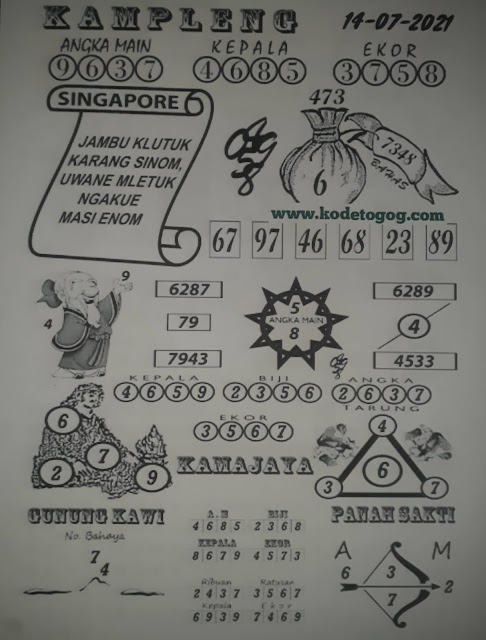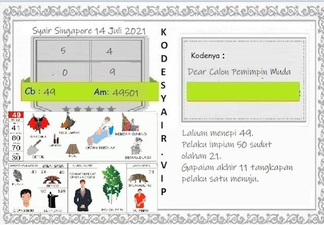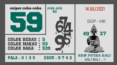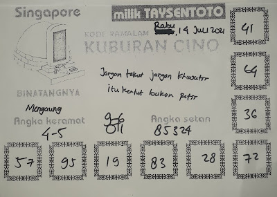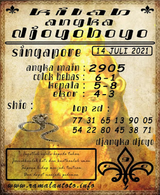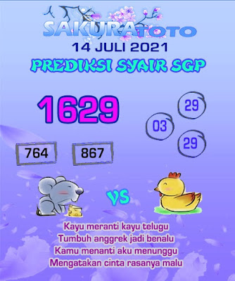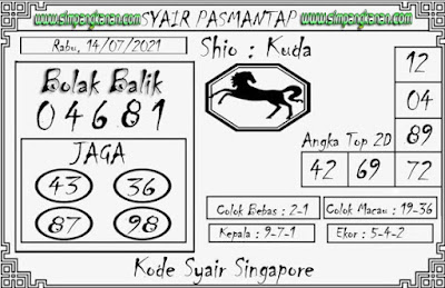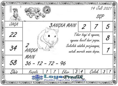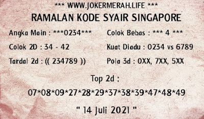 Pada dasarnya dalam semua permainan togel online ini sangatlah membutuhkan kepekaan atau kesadaran anda dalam membaca serta memprediksi nomor togel singapore. Oleh karena itu syair Togel Singapore yang kami terbitkan ini akan sangat memudahkan para pejudi online saat memprediksi angka keluaran di periode selanjutnya. kami sudah mempersiapkan dengan jelas tentang Prediksi togel Sgp 14 Juli 2021 untuk anda para pencinta judi online.