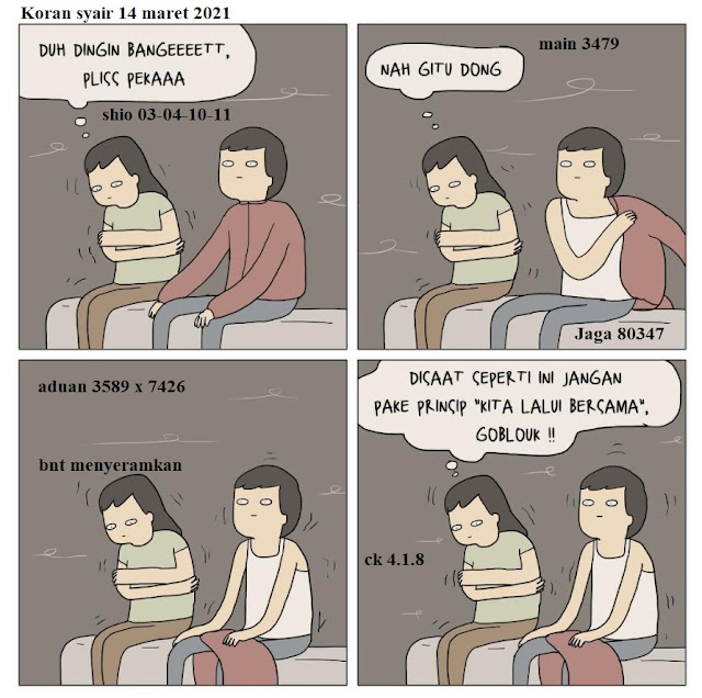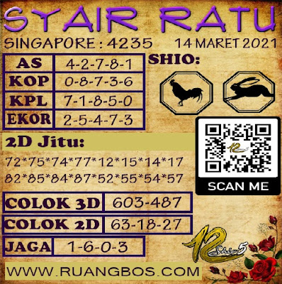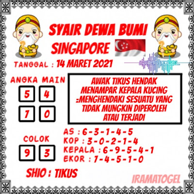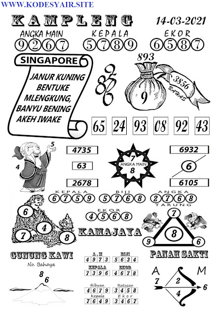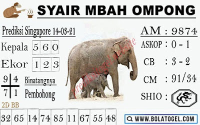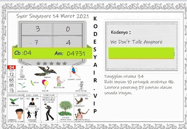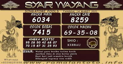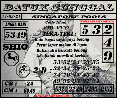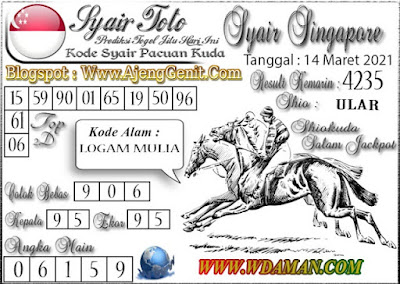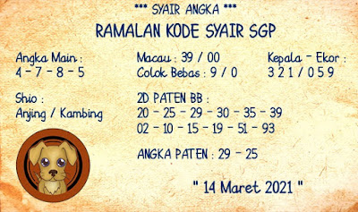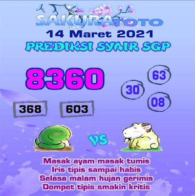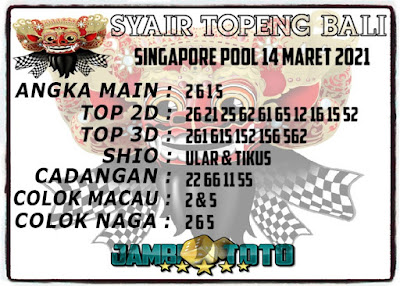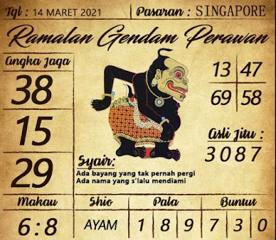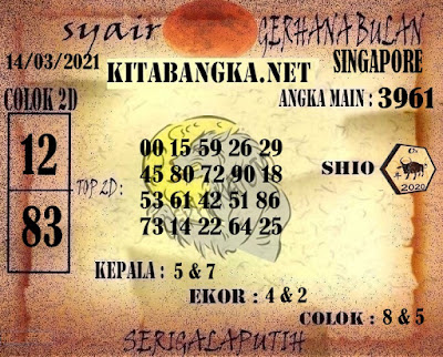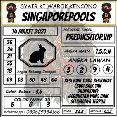 Pada dasarnya dalam semua permainan togel online ini sangatlah membutuhkan kepekaan atau kesadaran anda dalam membaca serta memprediksi nomor togel singapore. Oleh karena itu syair Togel Singapore yang kami terbitkan ini akan sangat memudahkan para pejudi online saat memprediksi angka keluaran di periode selanjutnya. kami sudah mempersiapkan dengan jelas tentang Prediksi togel Sgp 14 Maret 2021 untuk anda para pencinta judi online.