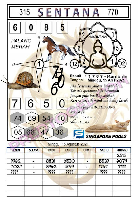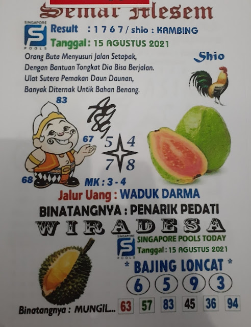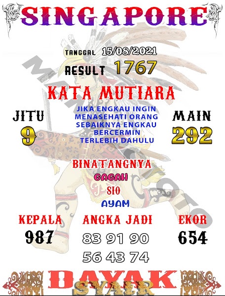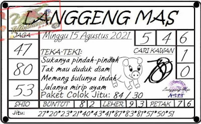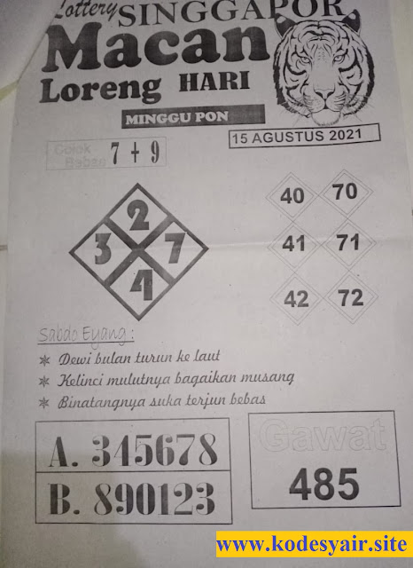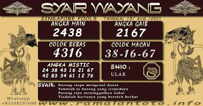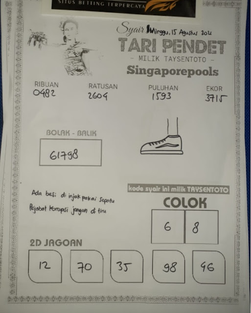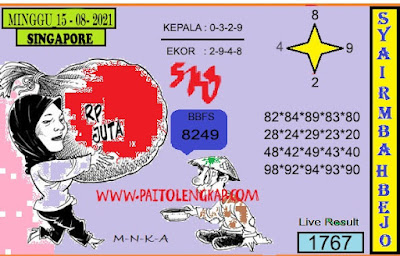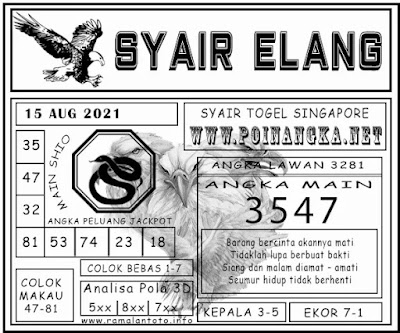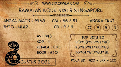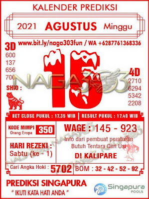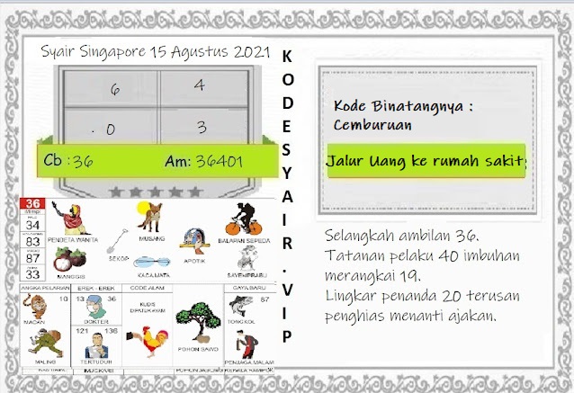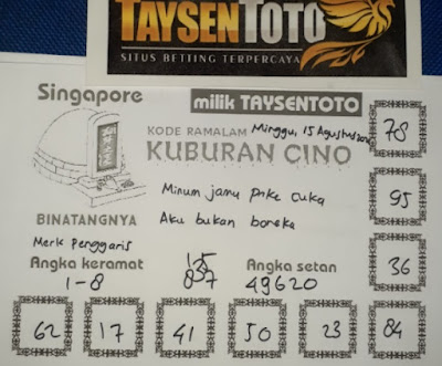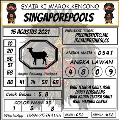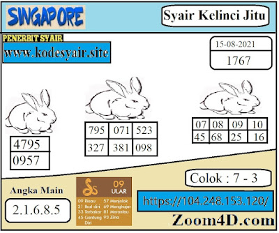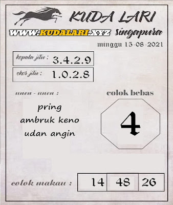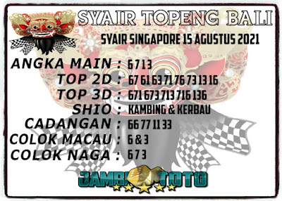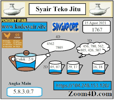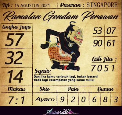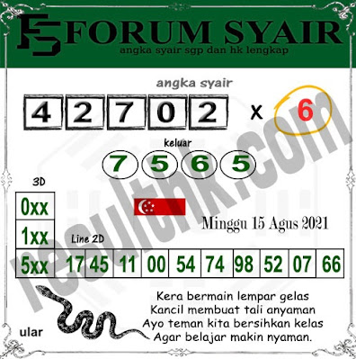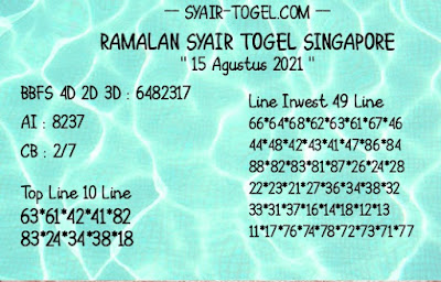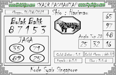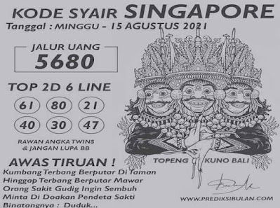 Pada dasarnya dalam semua permainan togel online ini sangatlah membutuhkan kepekaan atau kesadaran anda dalam membaca serta memprediksi nomor togel singapore. Oleh karena itu syair Togel Singapore yang kami terbitkan ini akan sangat memudahkan para pejudi online saat memprediksi angka keluaran di periode selanjutnya. kami sudah mempersiapkan dengan jelas tentang Prediksi togel Sgp 15 Agustus 2021 untuk anda para pencinta judi online.