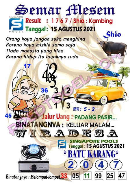 Tetap pergunakan naluri diri sendiri untuk membaca serta mengerti makna asal Syair Sgp 15 Agustus 2021. Para Pemain Judi Online sebaiknya jangan terlalu terburu – buru dalam membaca makna yang berasal dari prediksi syair singapore kami. Pahamilah secara pelan serta pilih salah satu diantara syair yang paling banyak dicari oleh para pecinta togel online. Meskipun syair togel yang kami berikan ini sangat banyak serta beraneka ragam, tetapi pada dasarnya ada beberapa syair yang sangat banyak dicari seperti syair kampleng, syair pandawa, syair mbah semar, serta syair naga mas.