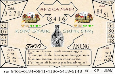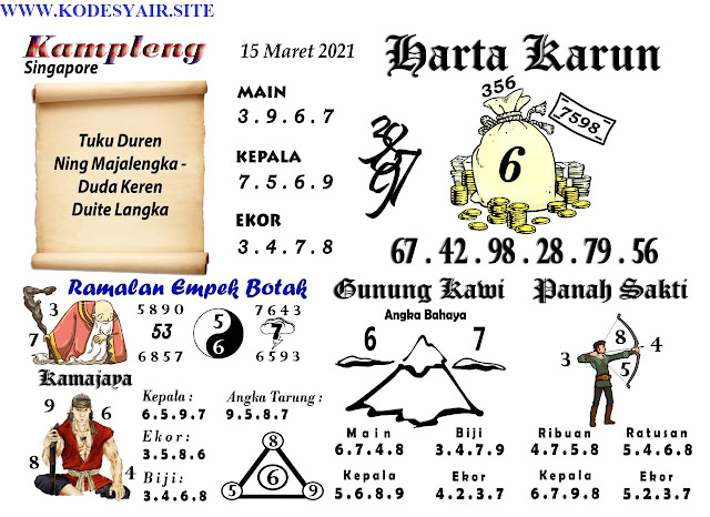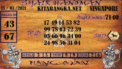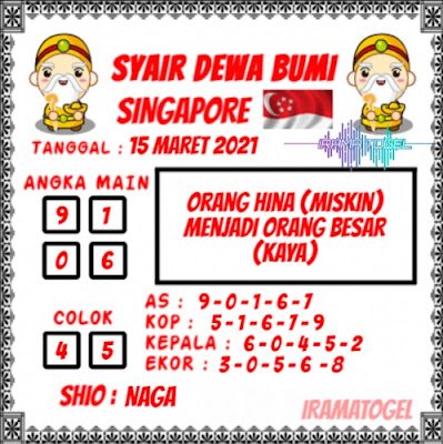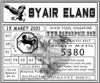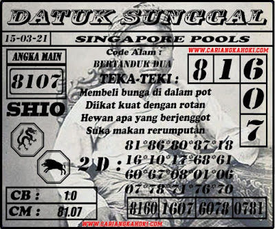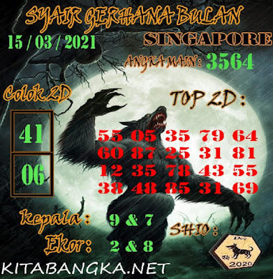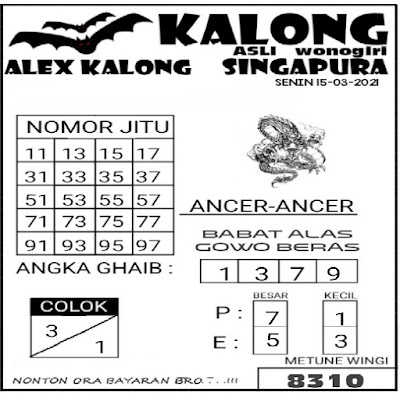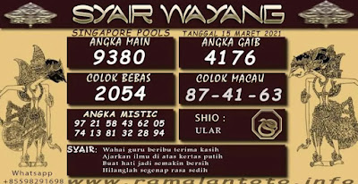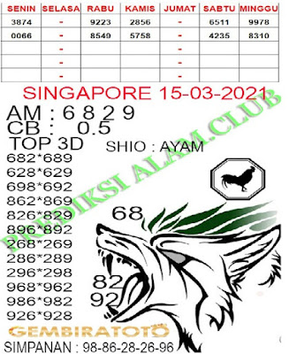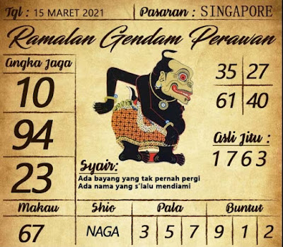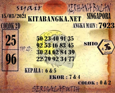 Pada dasarnya dalam semua permainan togel online ini sangatlah membutuhkan kepekaan atau kesadaran anda dalam membaca serta memprediksi nomor togel singapore. Oleh karena itu syair Togel Singapore yang kami terbitkan ini akan sangat memudahkan para pejudi online saat memprediksi angka keluaran di periode selanjutnya. kami sudah mempersiapkan dengan jelas tentang Prediksi togel Sgp 15 Maret 2021 untuk anda para pencinta judi online.