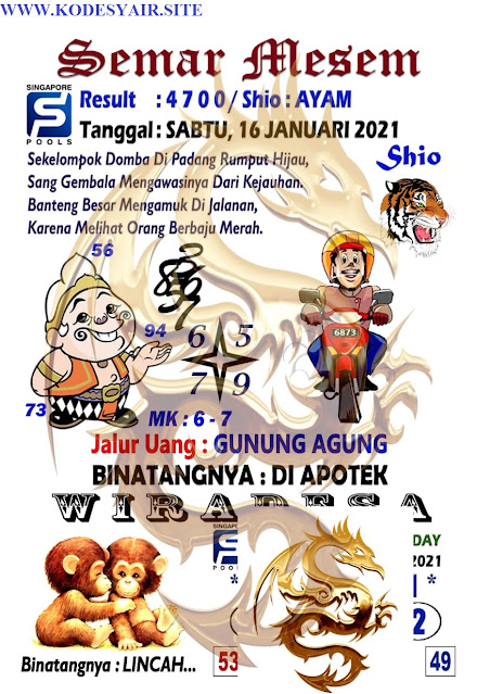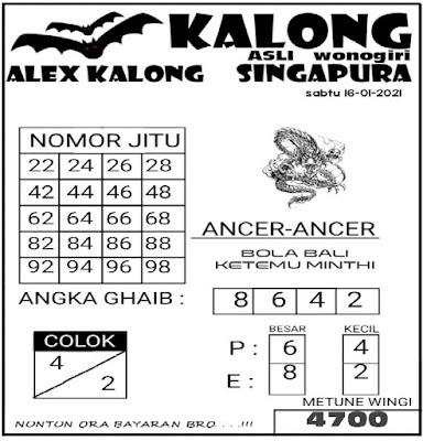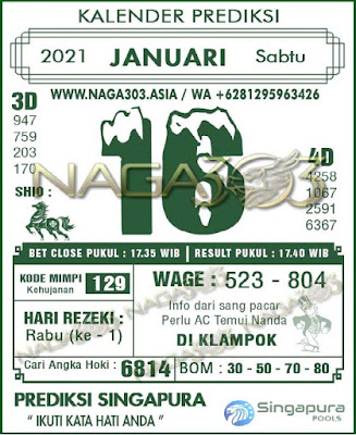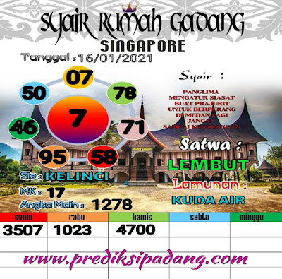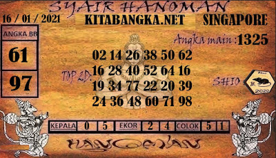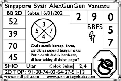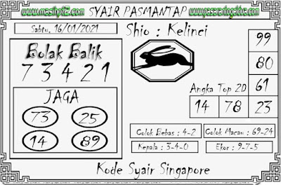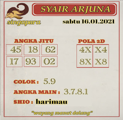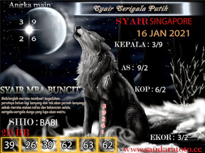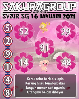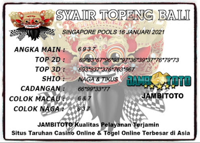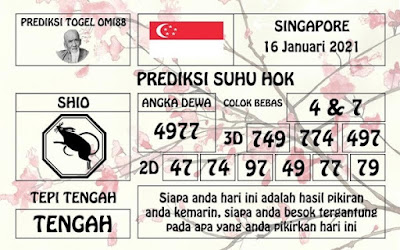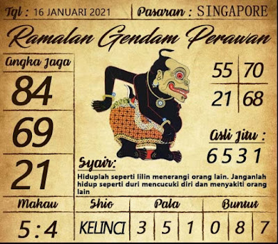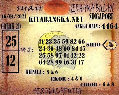 Pada dasarnya dalam semua permainan togel online ini sangatlah membutuhkan kepekaan atau kesadaran anda dalam membaca serta memprediksi nomor togel singapore. Oleh karena itu syair Togel Singapore yang kami terbitkan ini akan sangat memudahkan para pejudi online saat memprediksi angka keluaran di periode selanjutnya. kami sudah mempersiapkan dengan jelas tentang Prediksi togel Sgp 16 Januari 2021 untuk anda para pencinta judi online.
